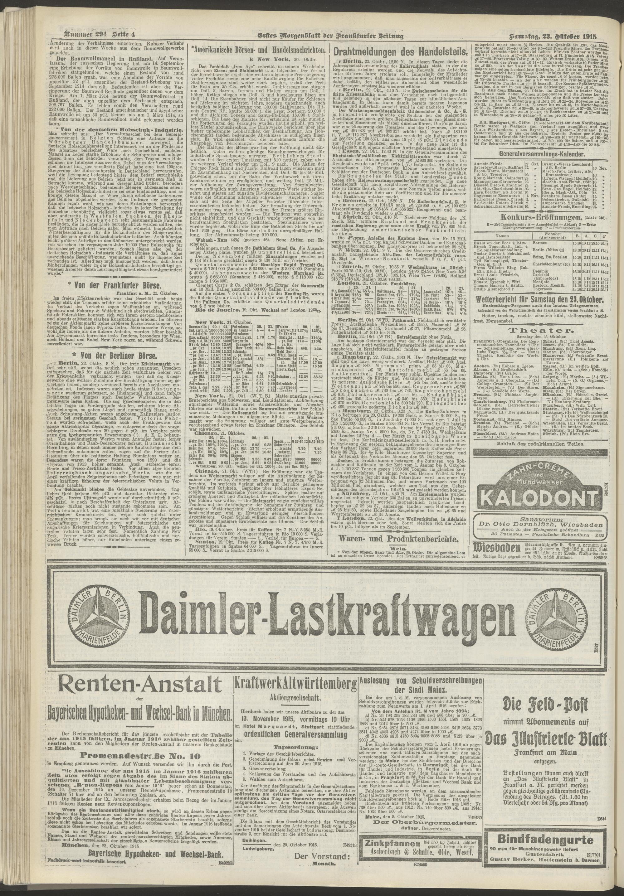 23.10.1915 = Nr. 294. Erstes Morgenblatt
