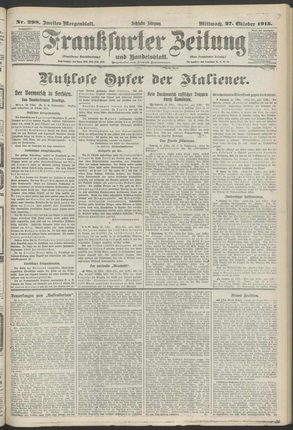 27.10.1915 = Nr. 298. Zweites Morgenblatt