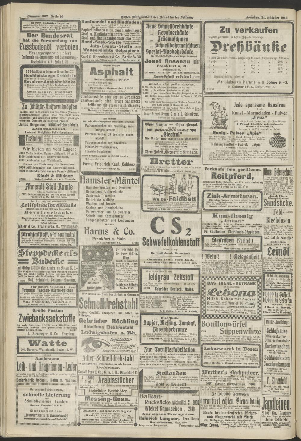 31.10.1915 = Nr. 302. Erstes Morgenblatt