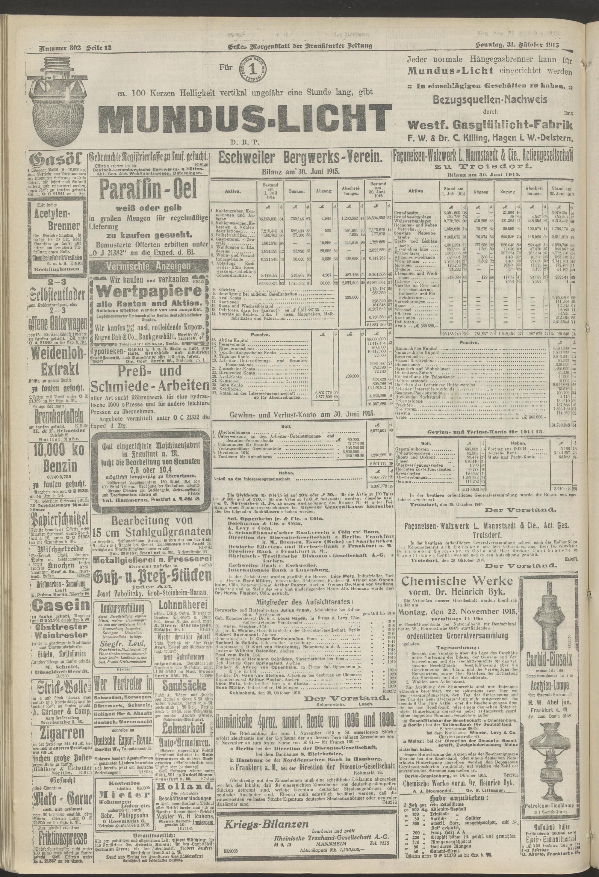 31.10.1915 = Nr. 302. Erstes Morgenblatt