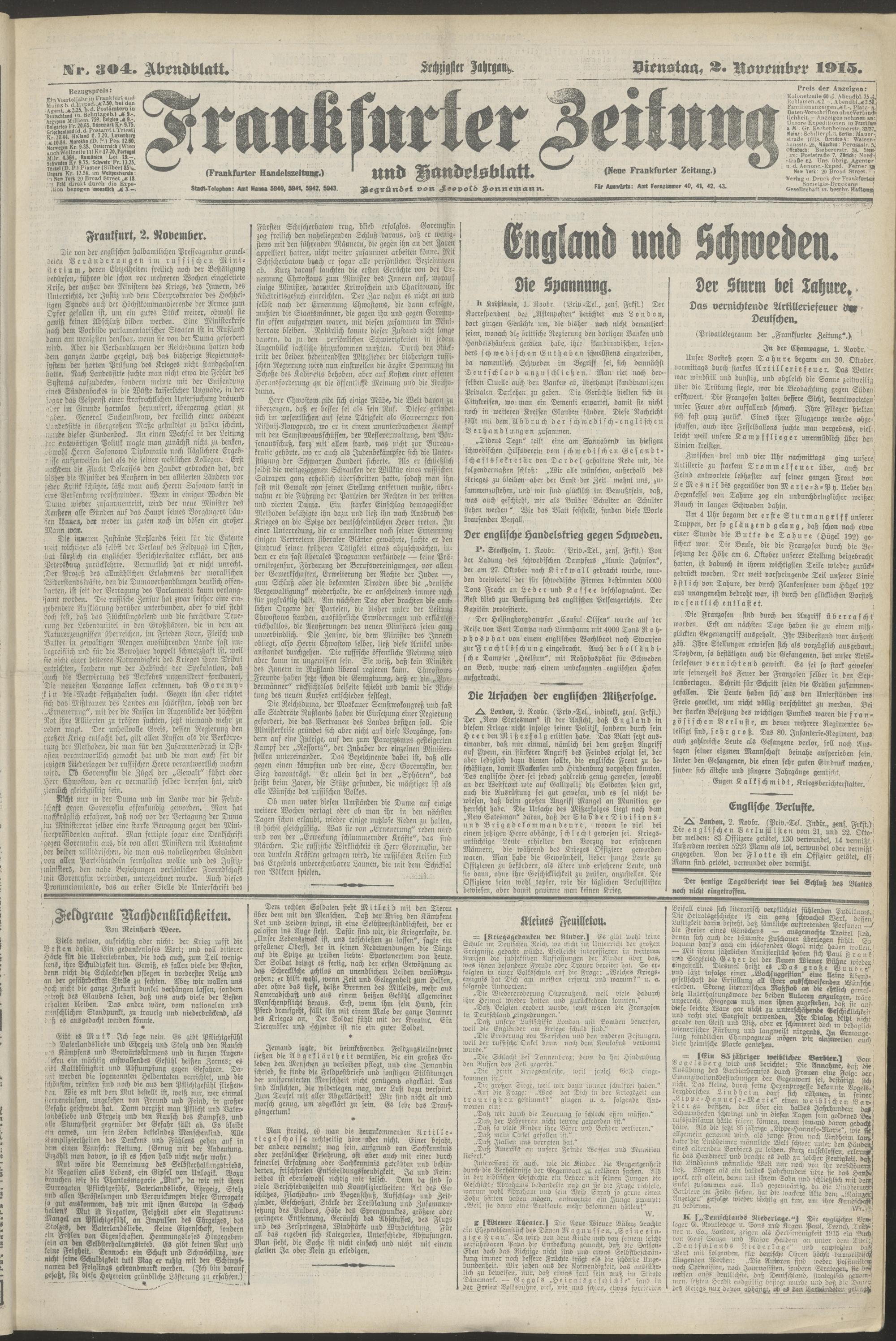02.11.1915 = Nr. 304. Abendblatt