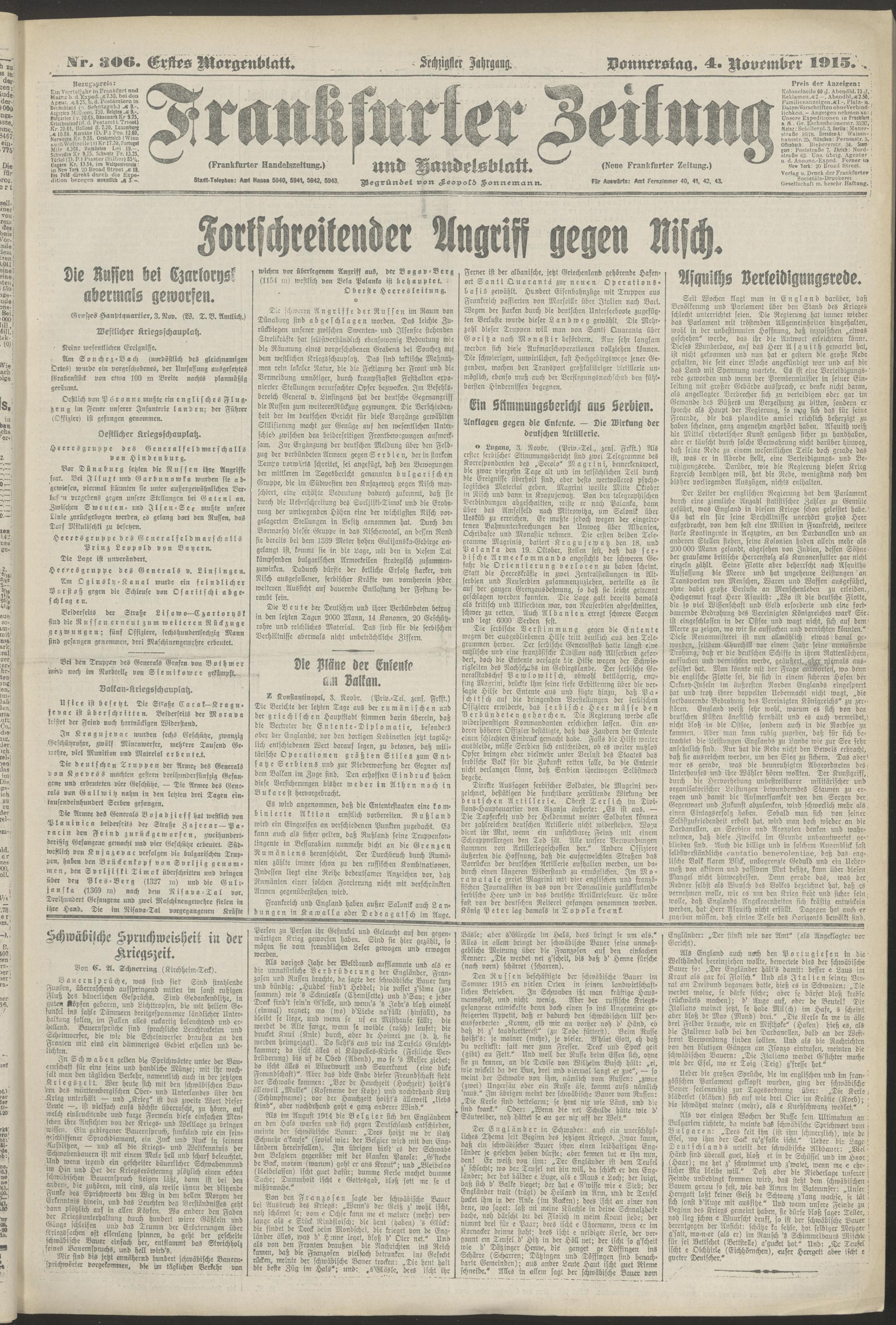 04.11.1915 = Nr. 306. Erstes Morgenblatt