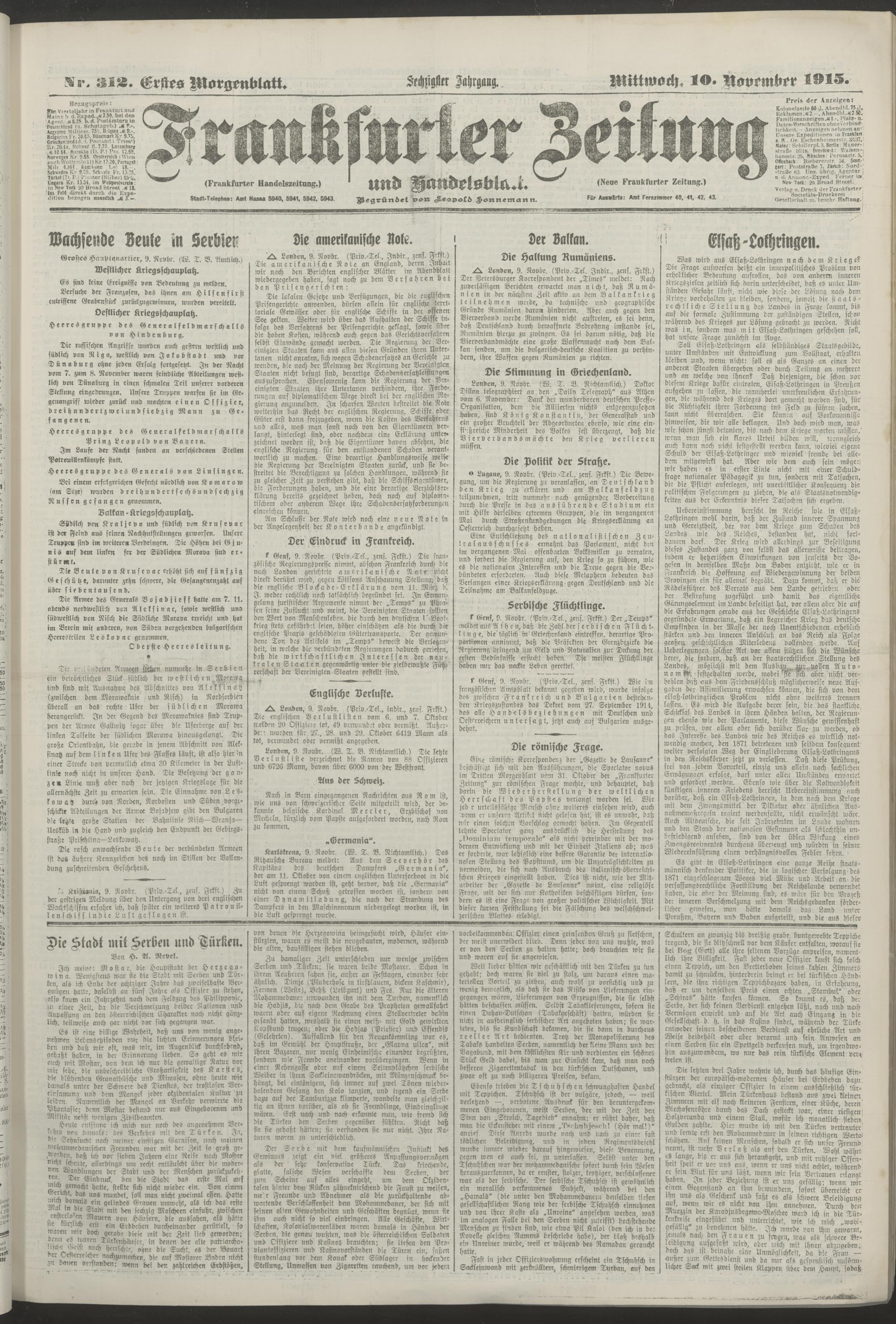 10.11.1915 = Nr. 312. Erstes Morgenblatt