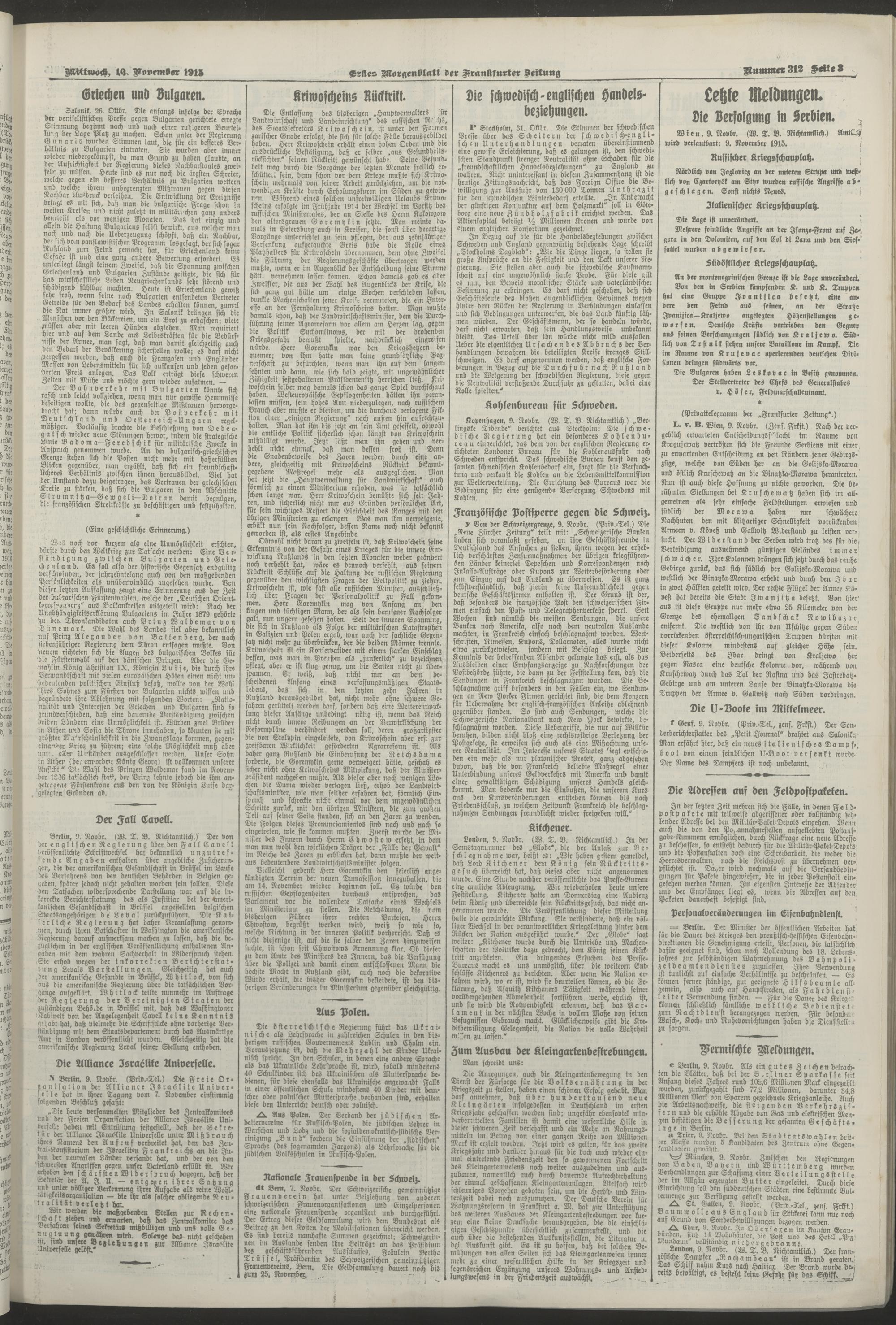 10.11.1915 = Nr. 312. Erstes Morgenblatt