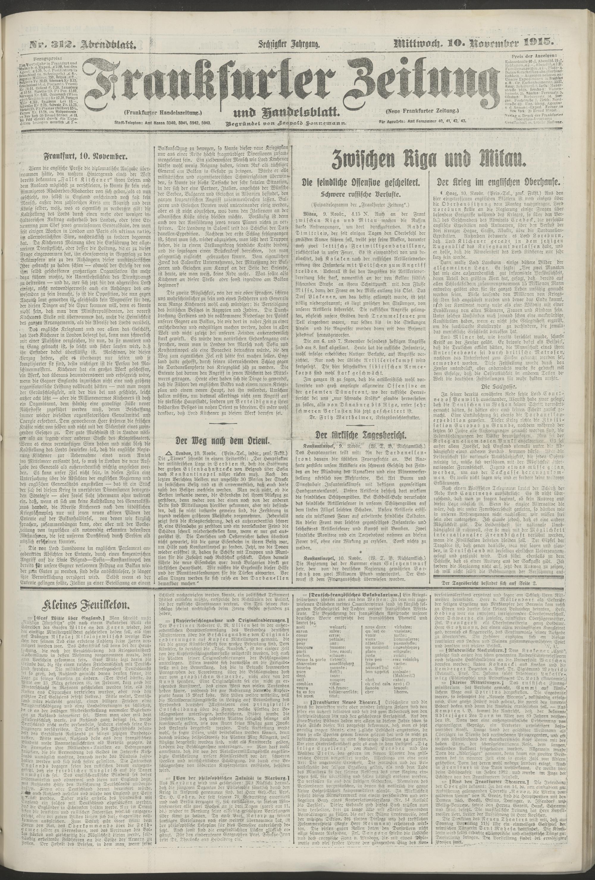 10.11.1915 = Nr. 312. Abendblatt