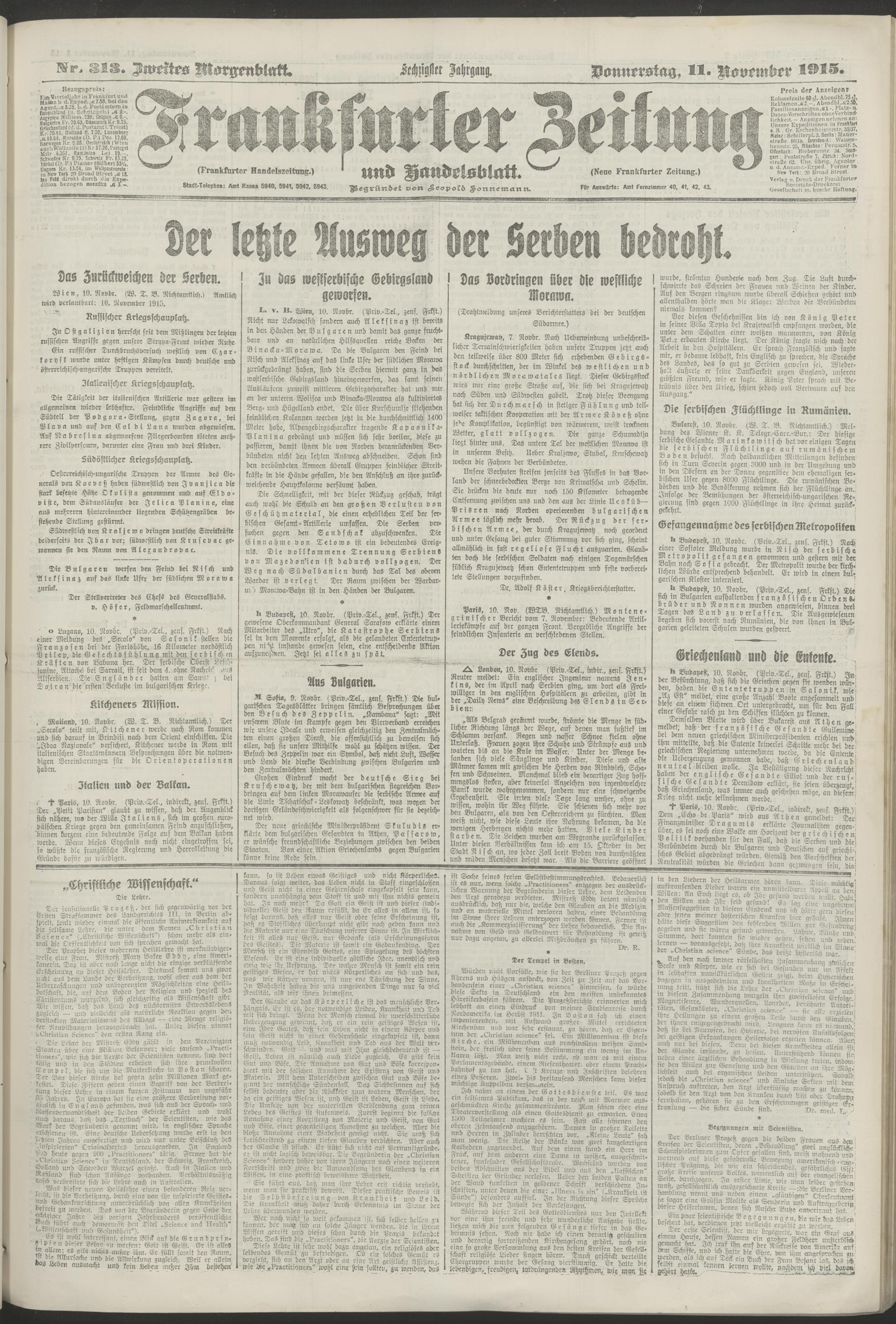 11.11.1915 = Nr. 313. Zweites Morgenblatt