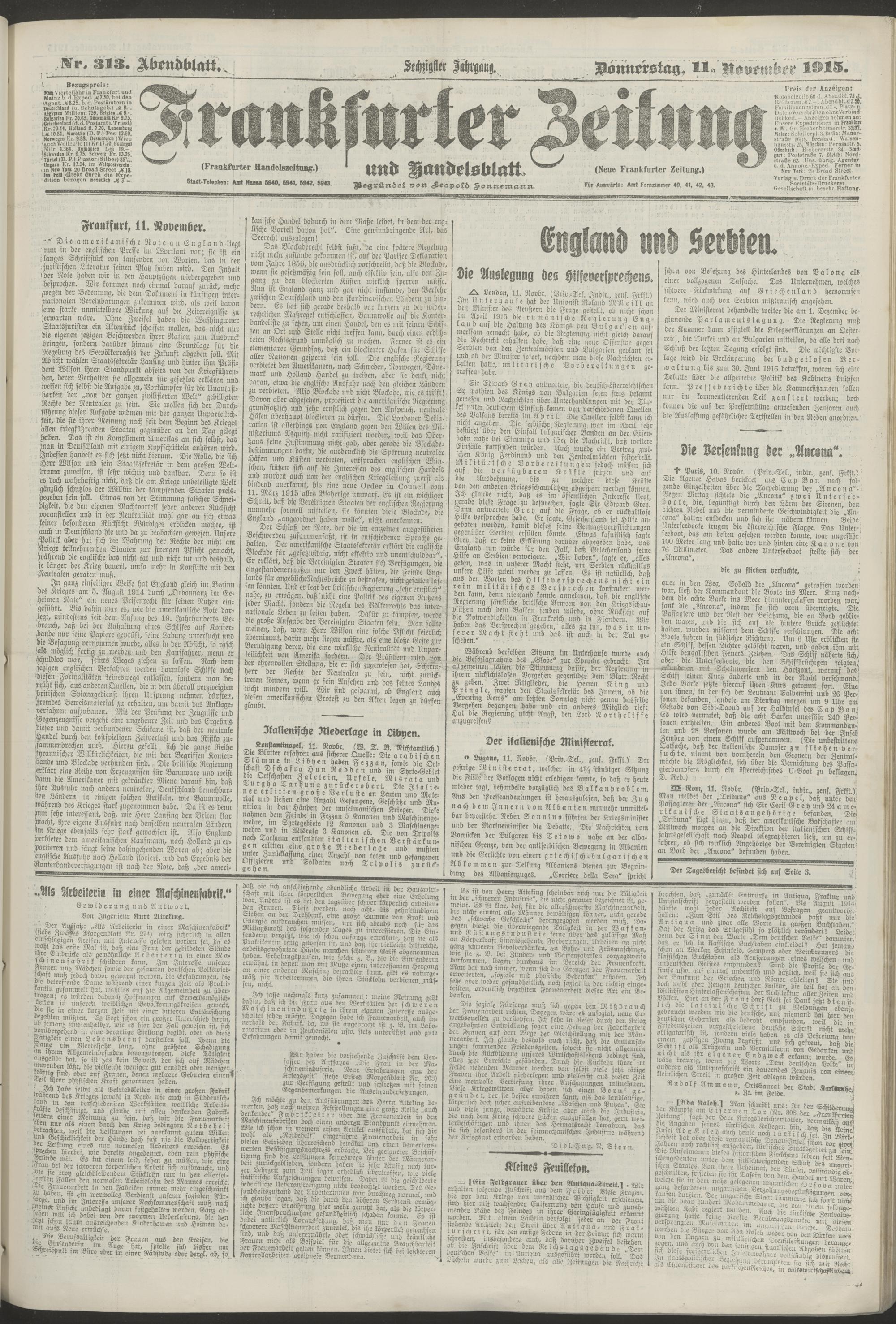 11.11.1915 = Nr. 313. Abendblatt