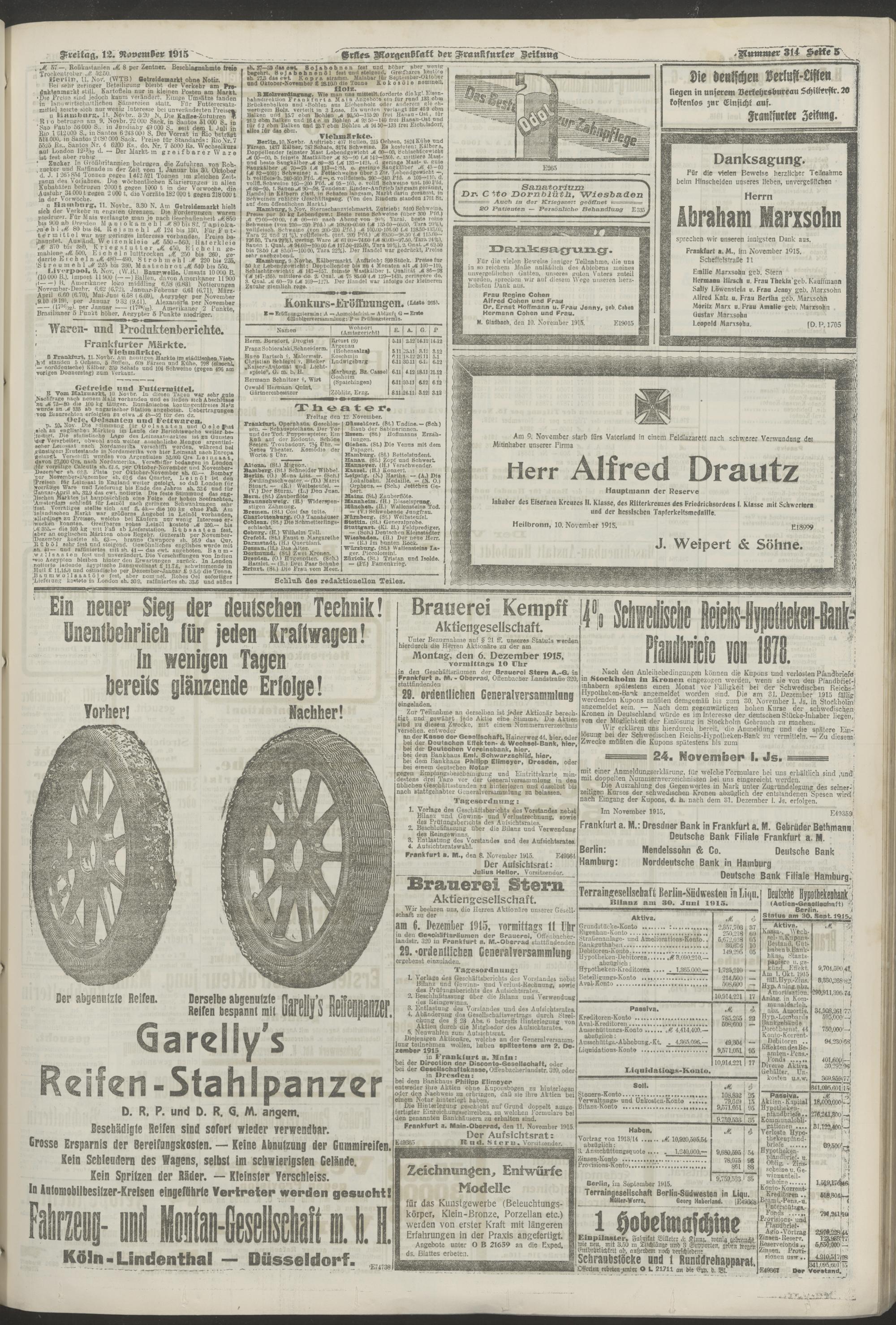 12.11.1915 = Nr. 314. Erstes Morgenblatt