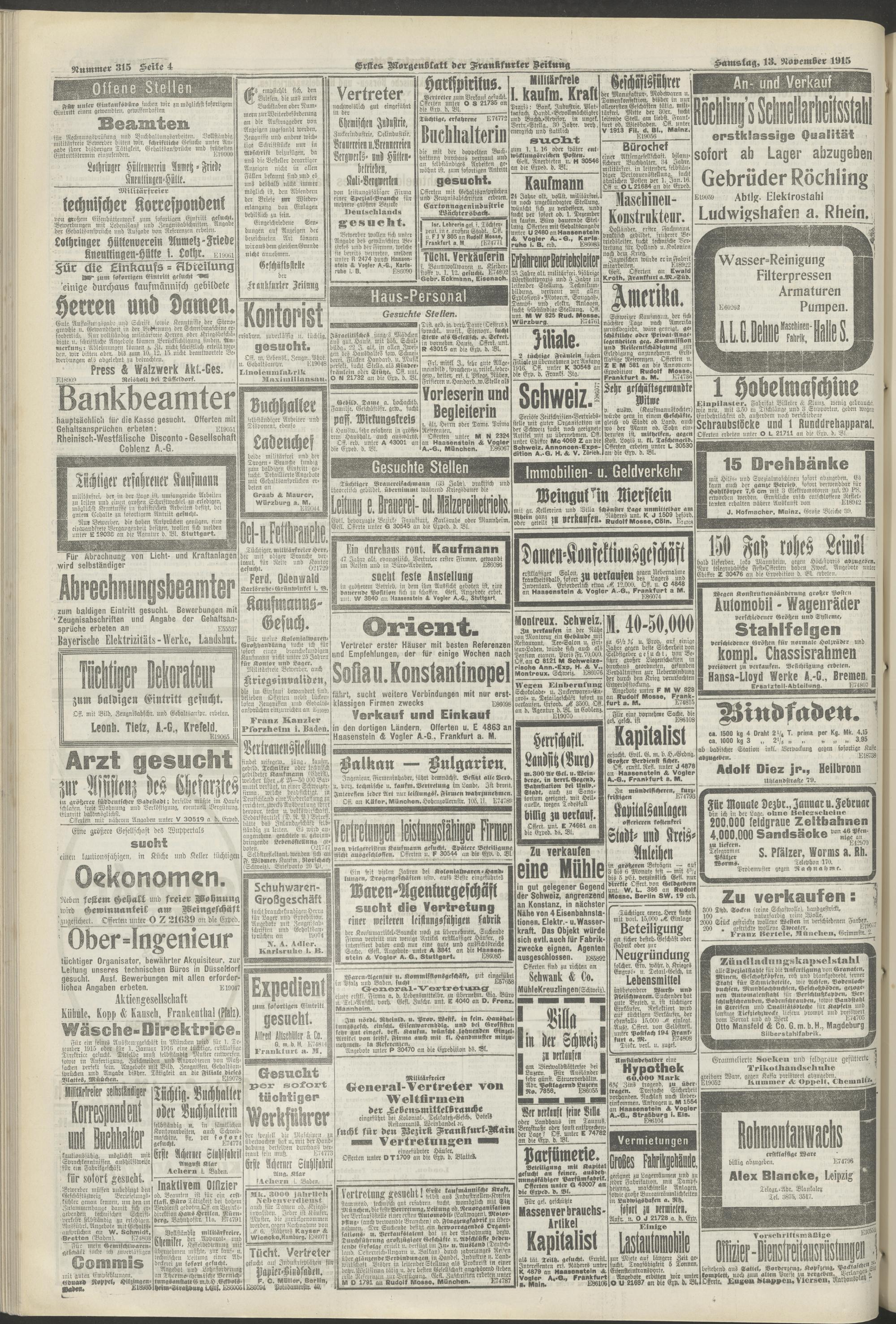 13.11.1915 = Nr. 315. Erstes Morgenblatt