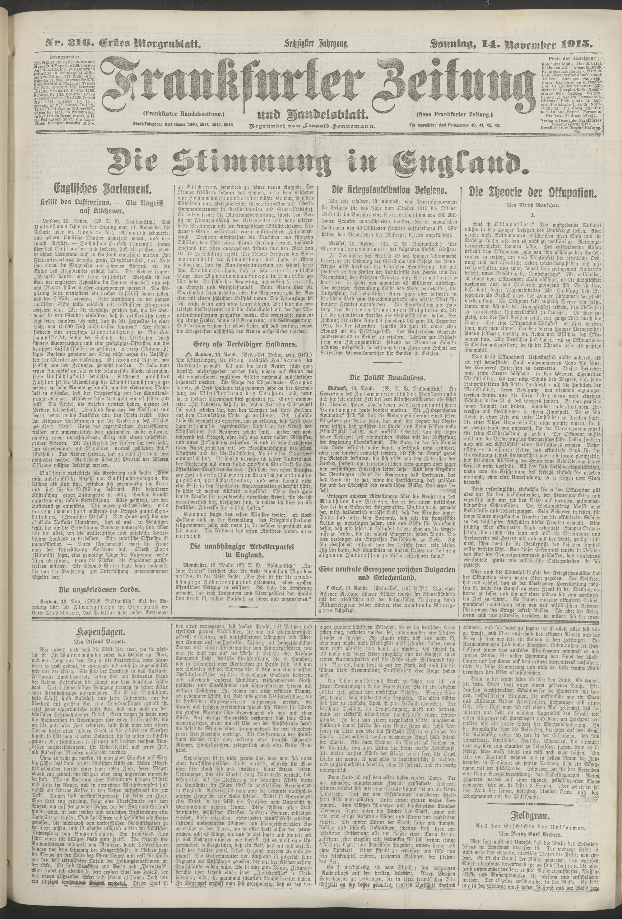 14.11.1915 = Nr. 316. Erstes Morgenblatt