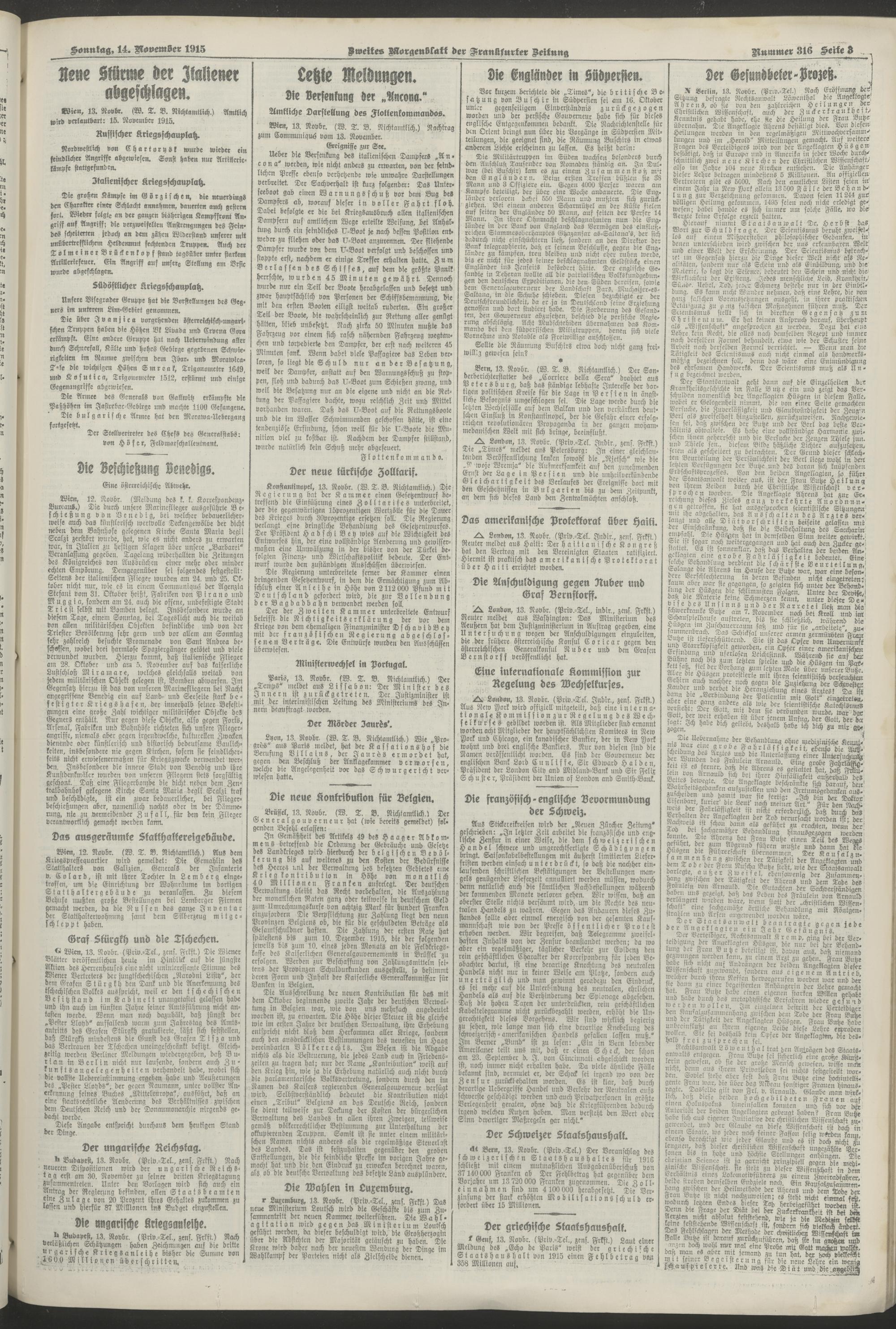 14.11.1915 = Nr. 316. Zweite Morgenblatt