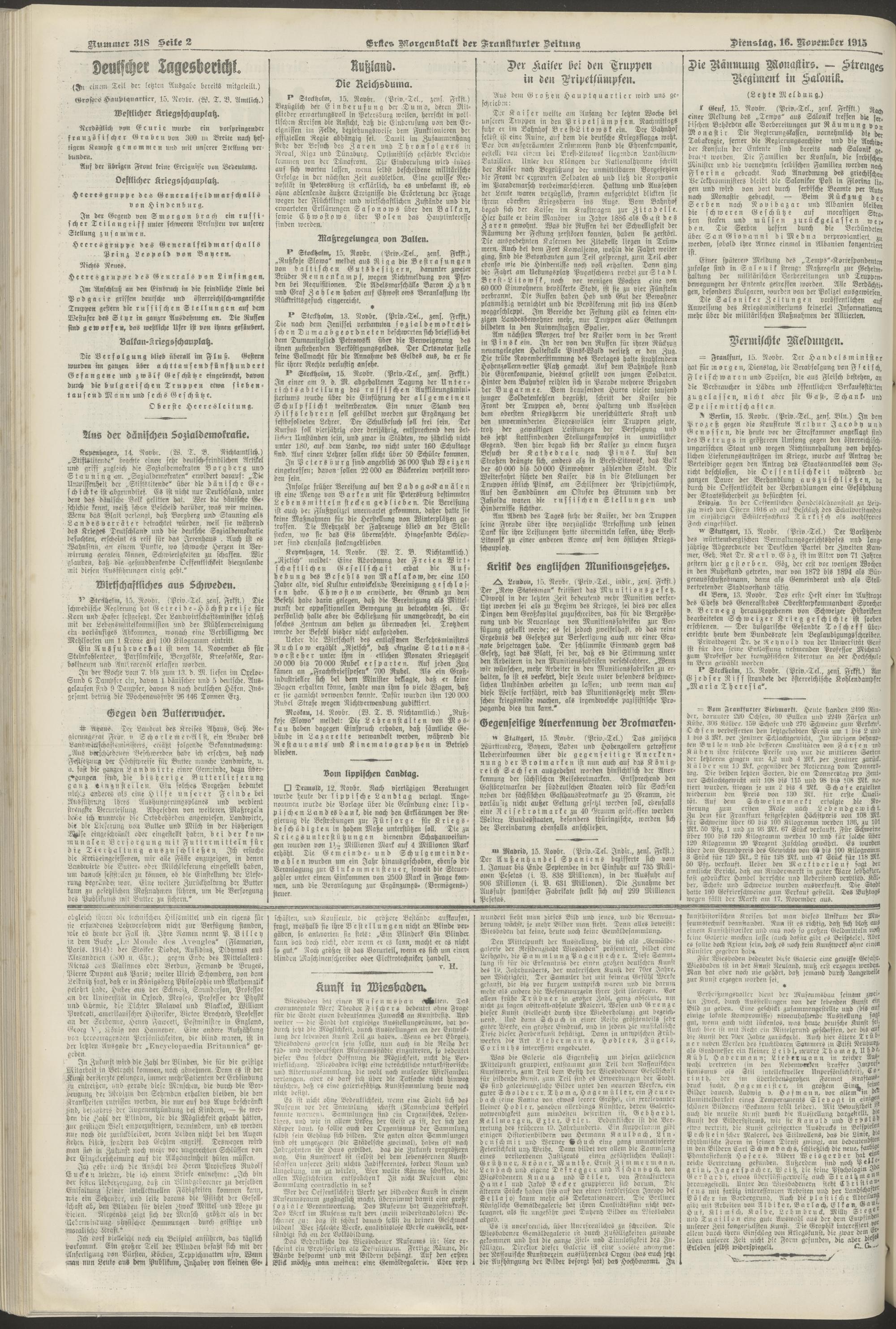 16.11.1915 = Nr. 318. Erstes Morgenblatt