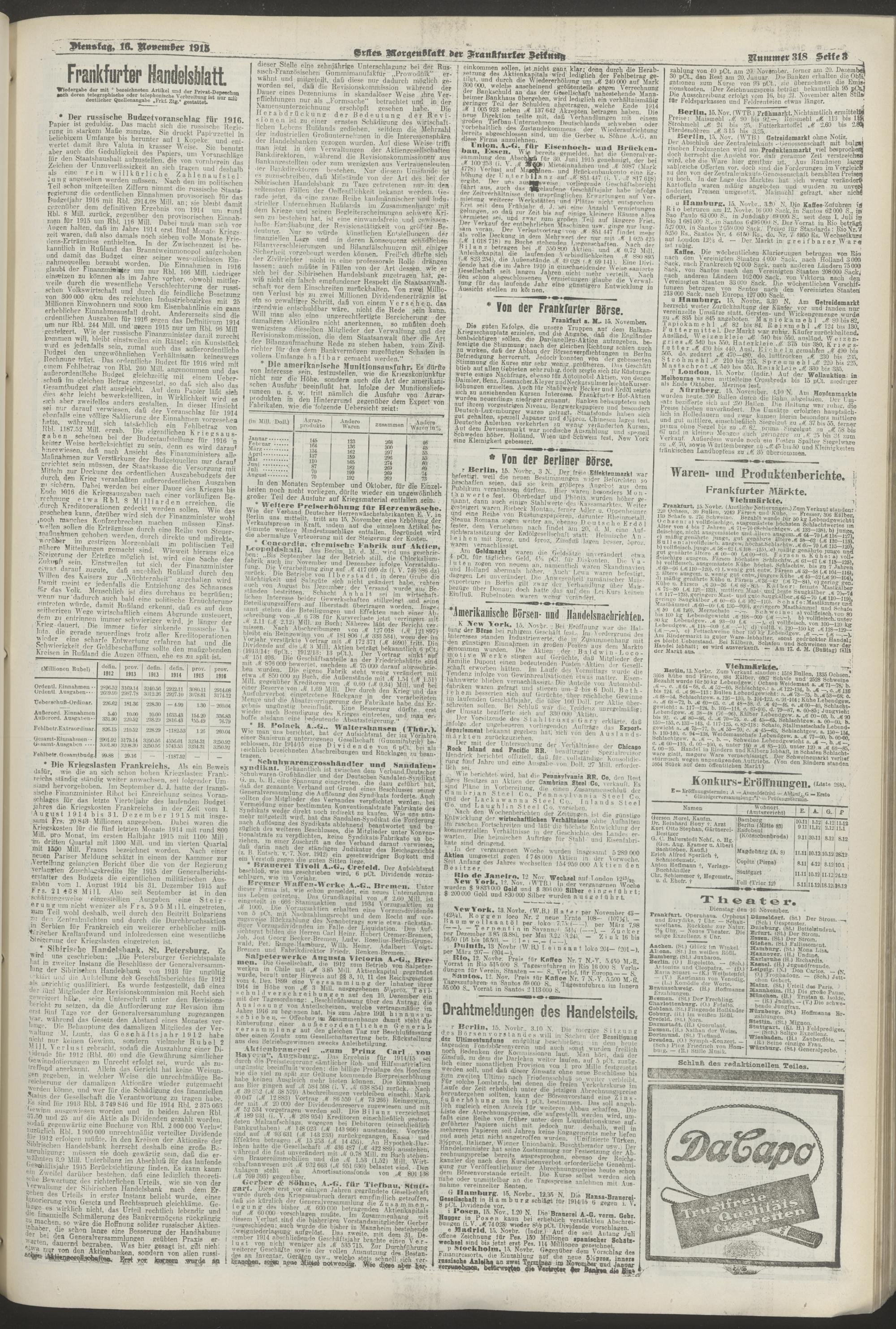 16.11.1915 = Nr. 318. Erstes Morgenblatt