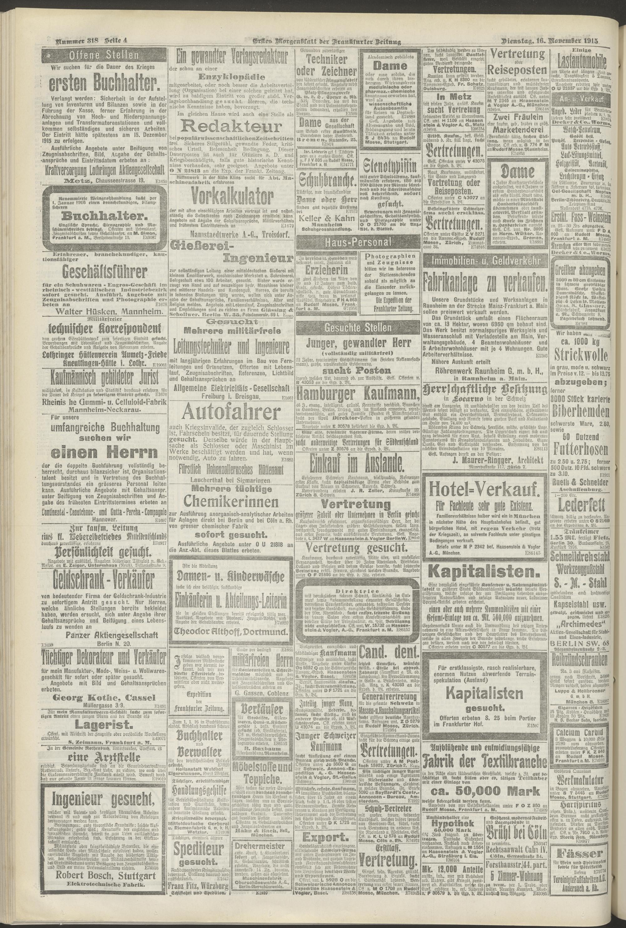 16.11.1915 = Nr. 318. Erstes Morgenblatt