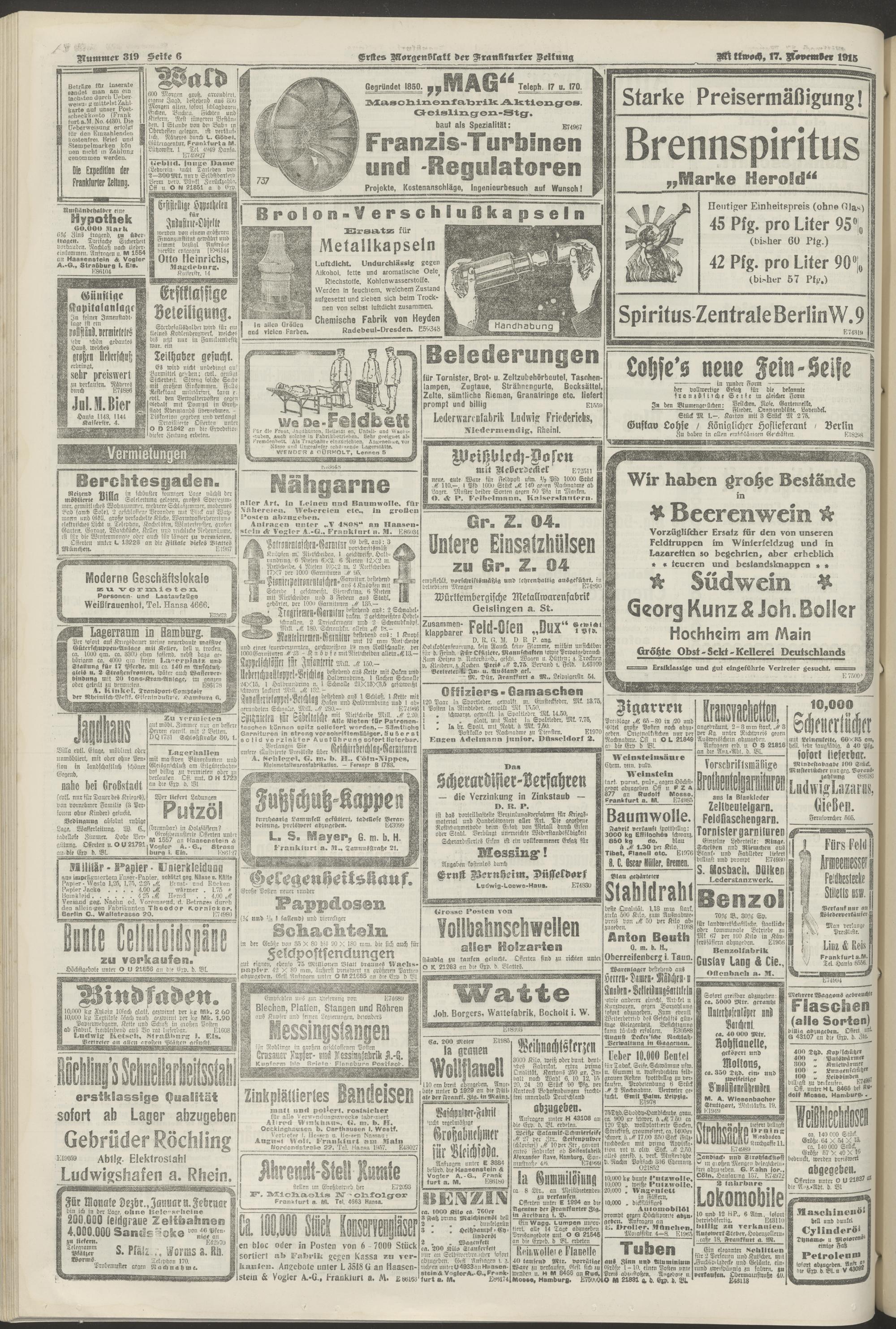 17.11.1915 = Nr. 319. Erstes Morgenblatt