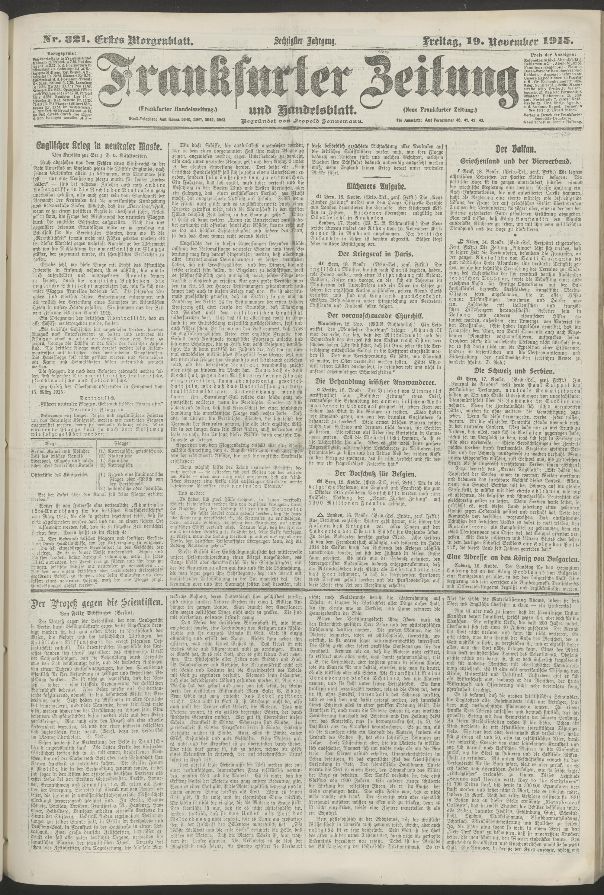 19.11.1915 = Nr. 321. Erstes Morgenblatt