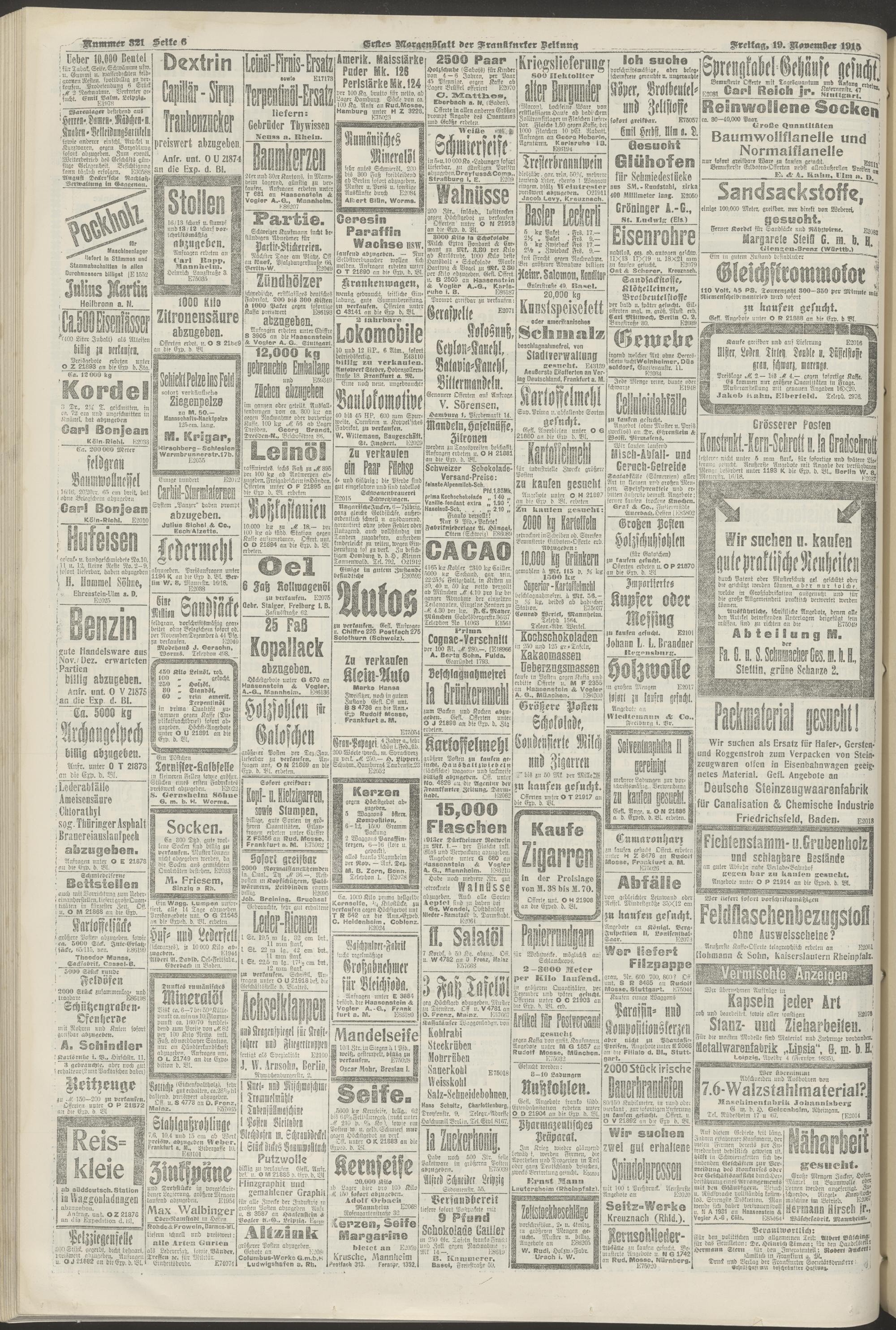 19.11.1915 = Nr. 321. Erstes Morgenblatt