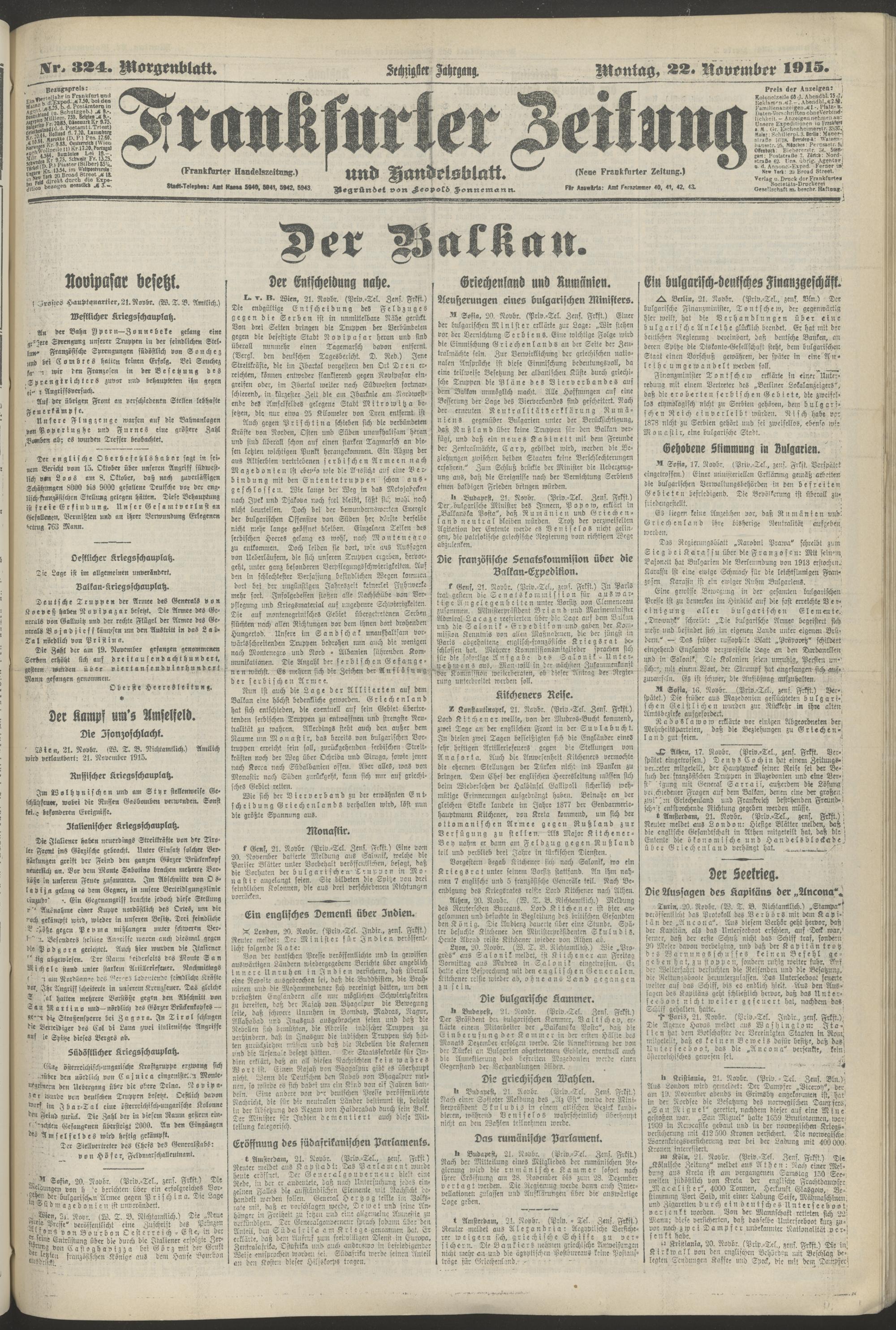 22.11.1915 = Nr. 324. Morgenblatt