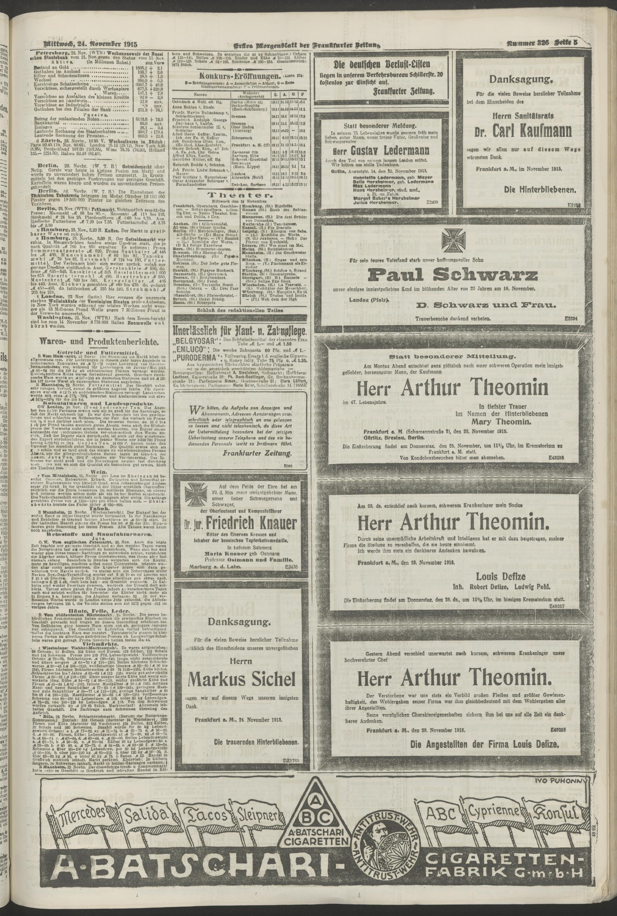 24.11.1915 = Nr. 326. Erstes Morgenblatt