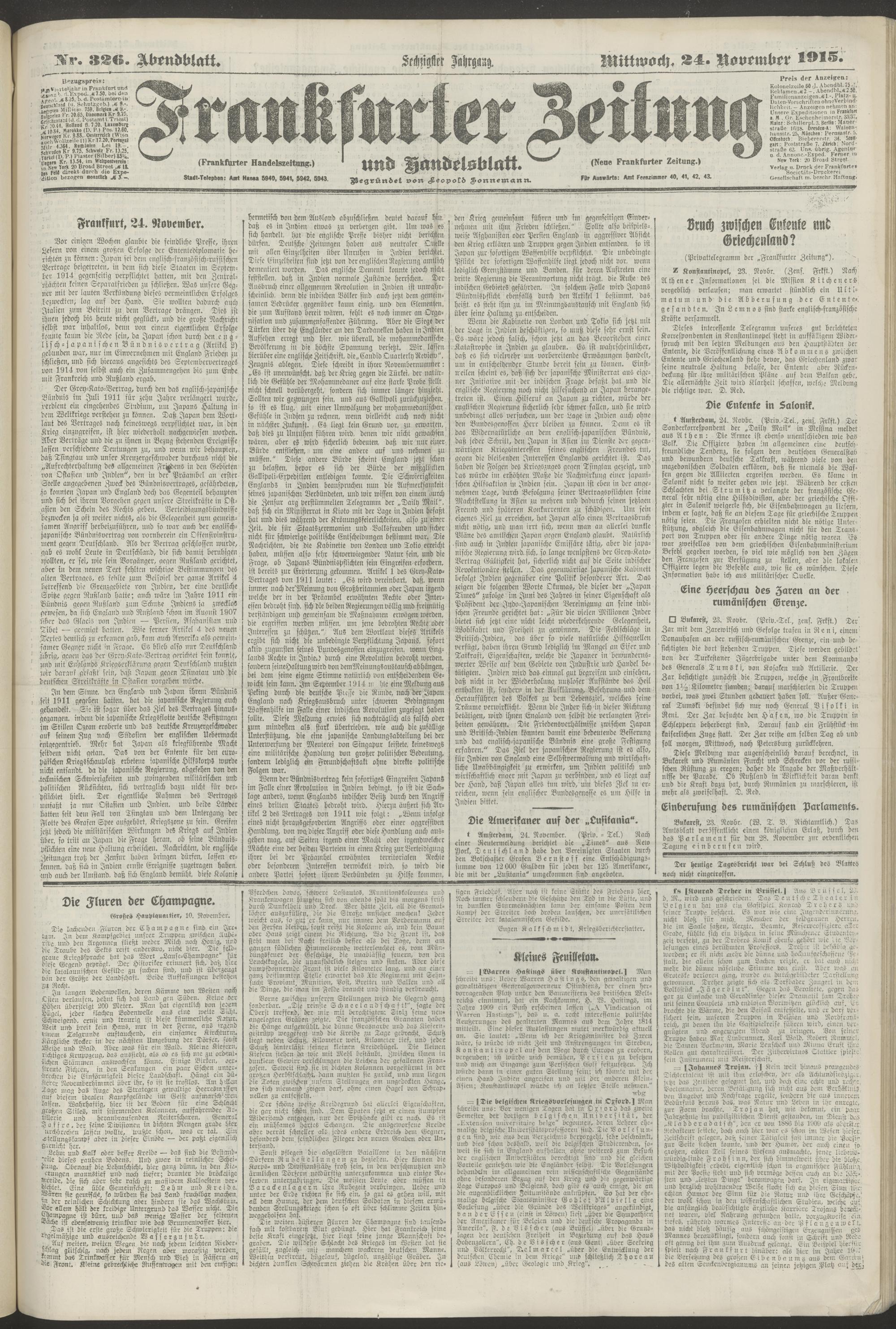 24.11.1915 = Nr. 326. Abendblatt