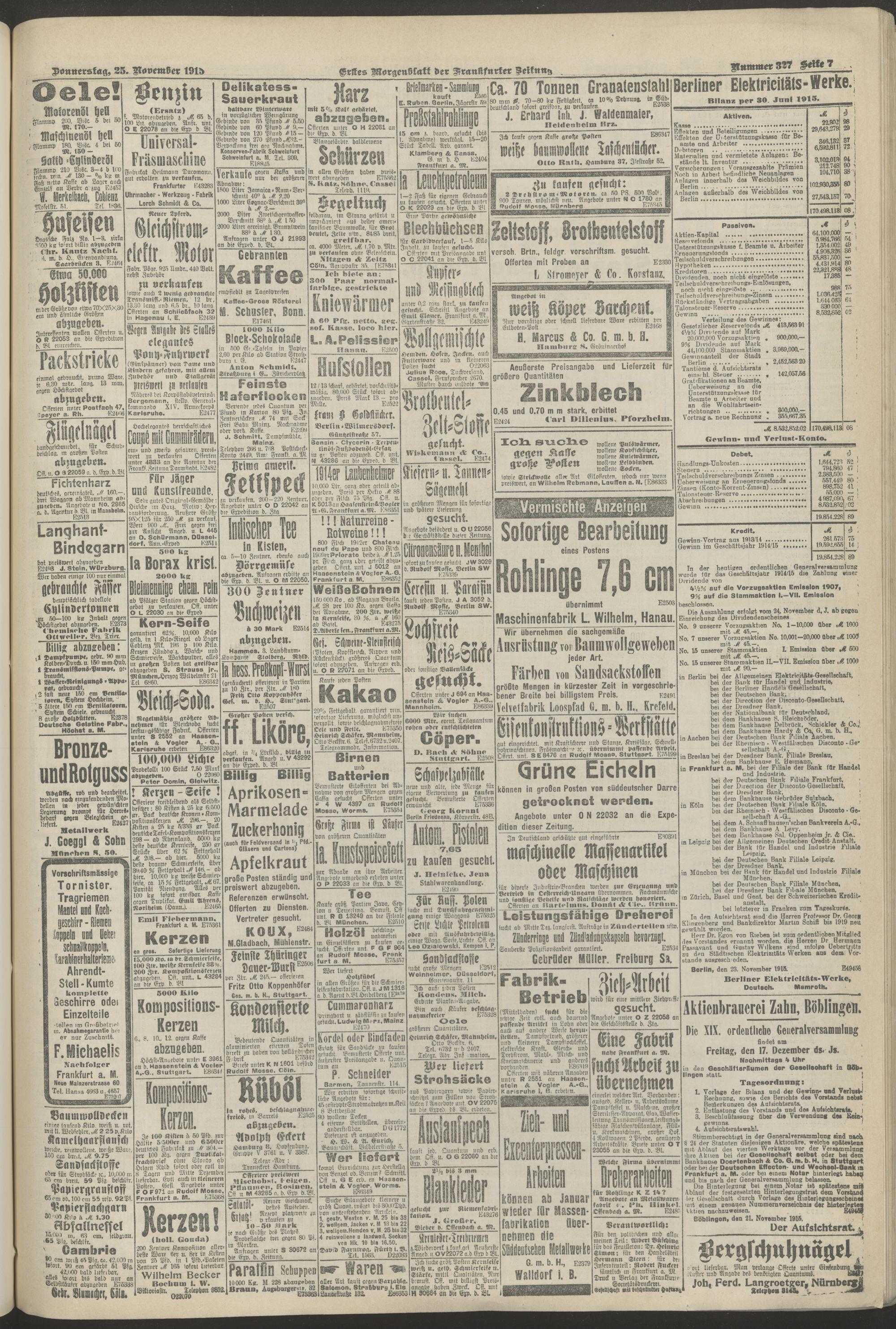 25.11.1915 = Nr. 327. Erstes Morgenblatt