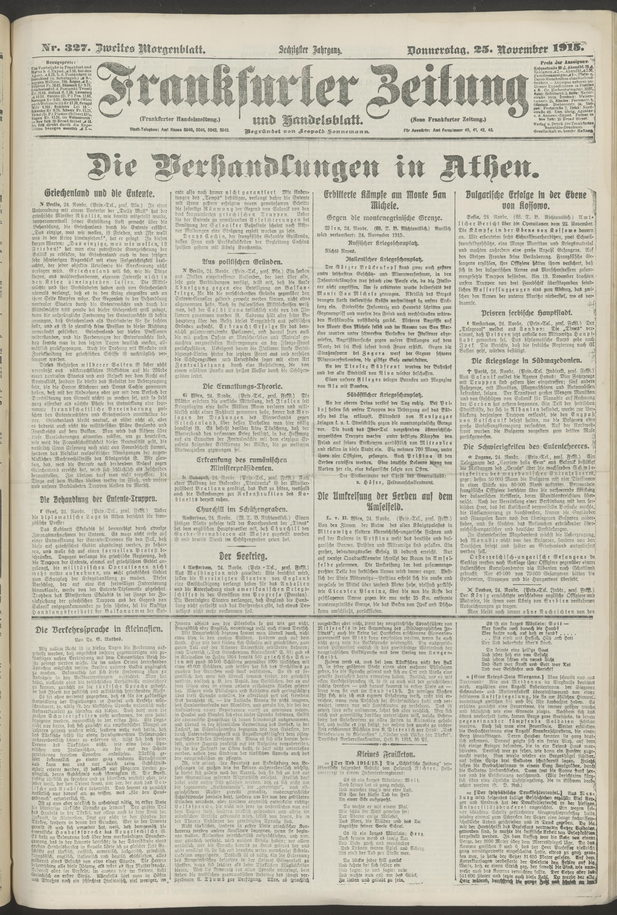 25.11.1915 = Nr. 327. Zweites Morgenblatt