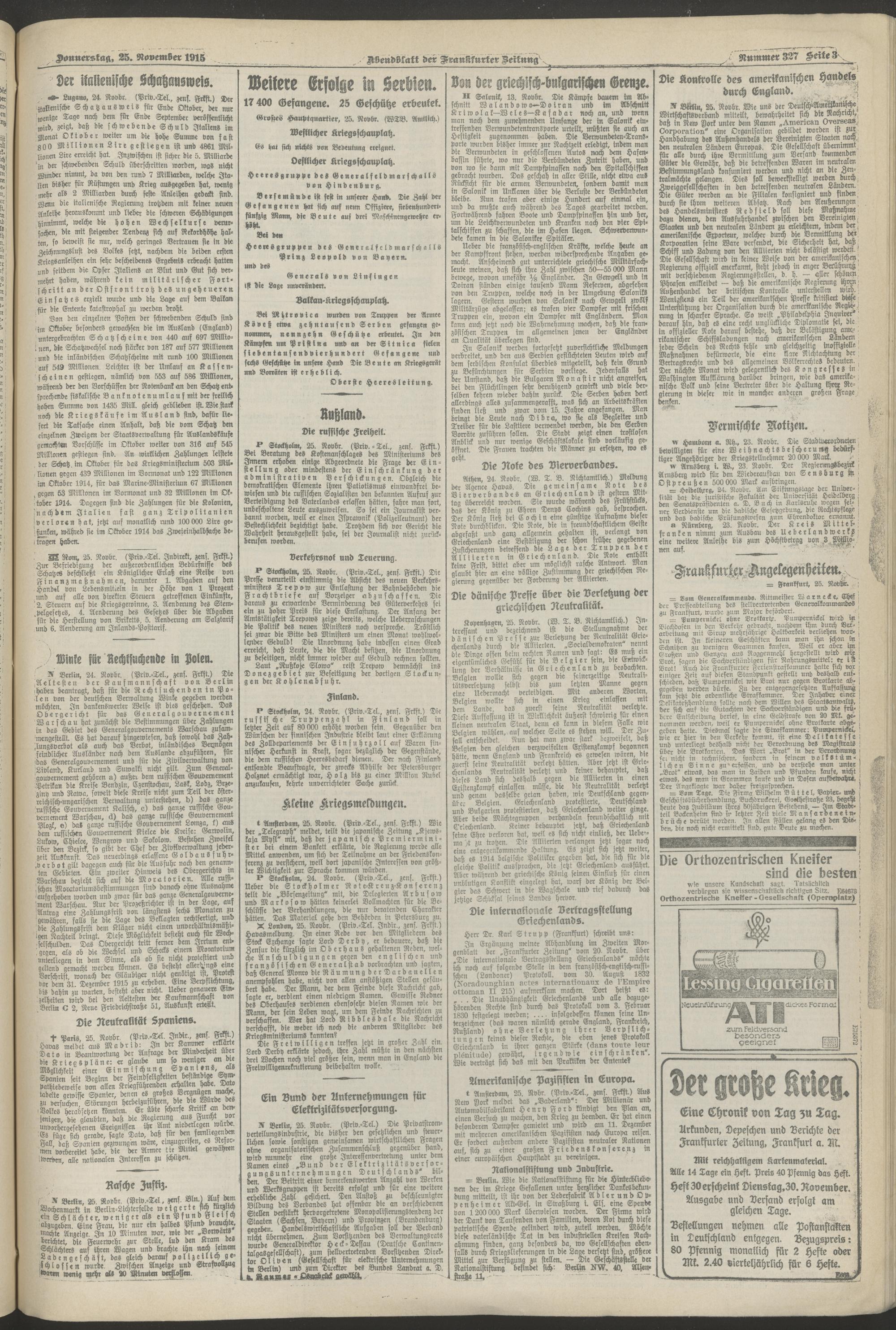 25.11.1915 = Nr. 327. Abendblatt