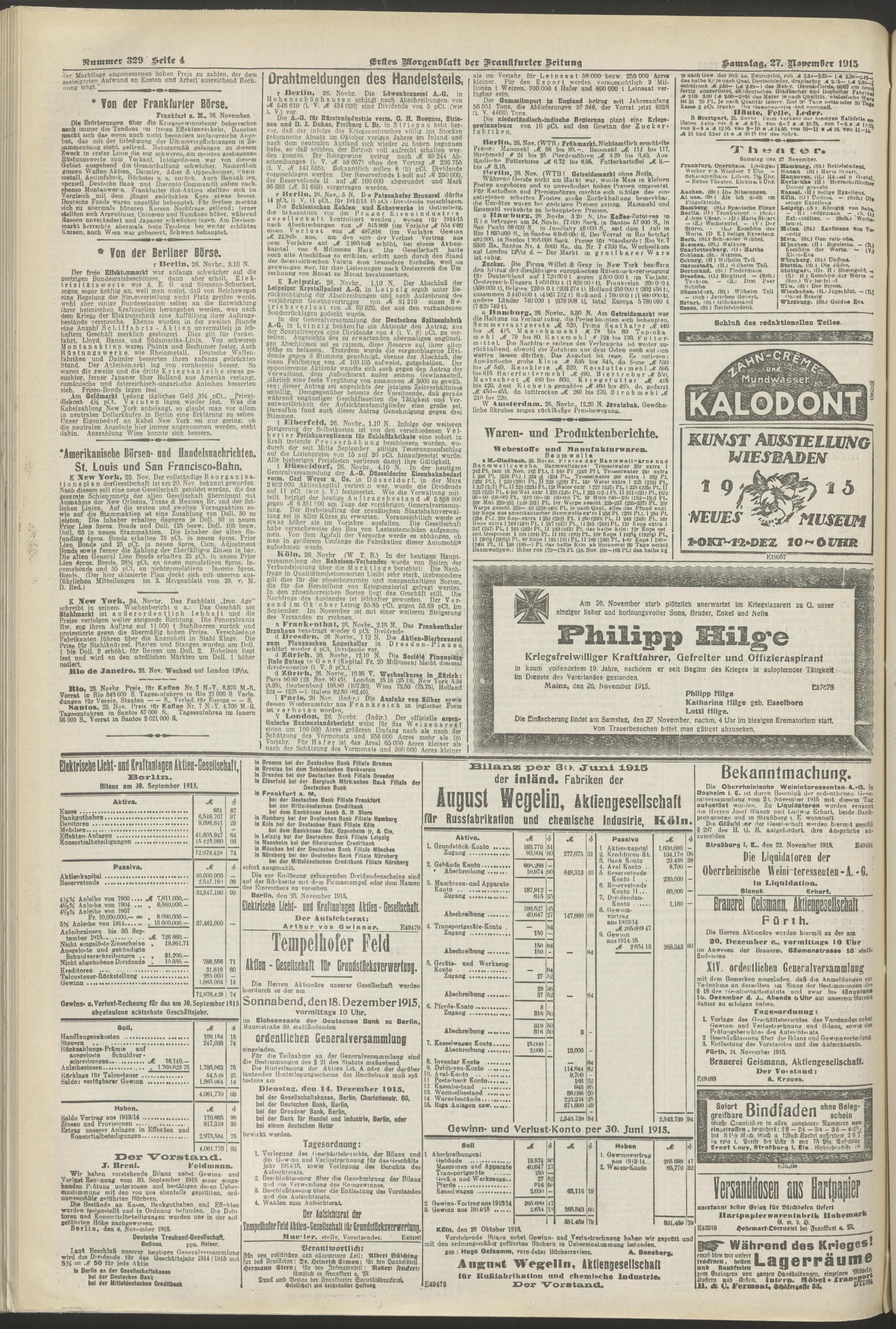 27.11.1915 = Nr. 329. Erstes Morgenblatt