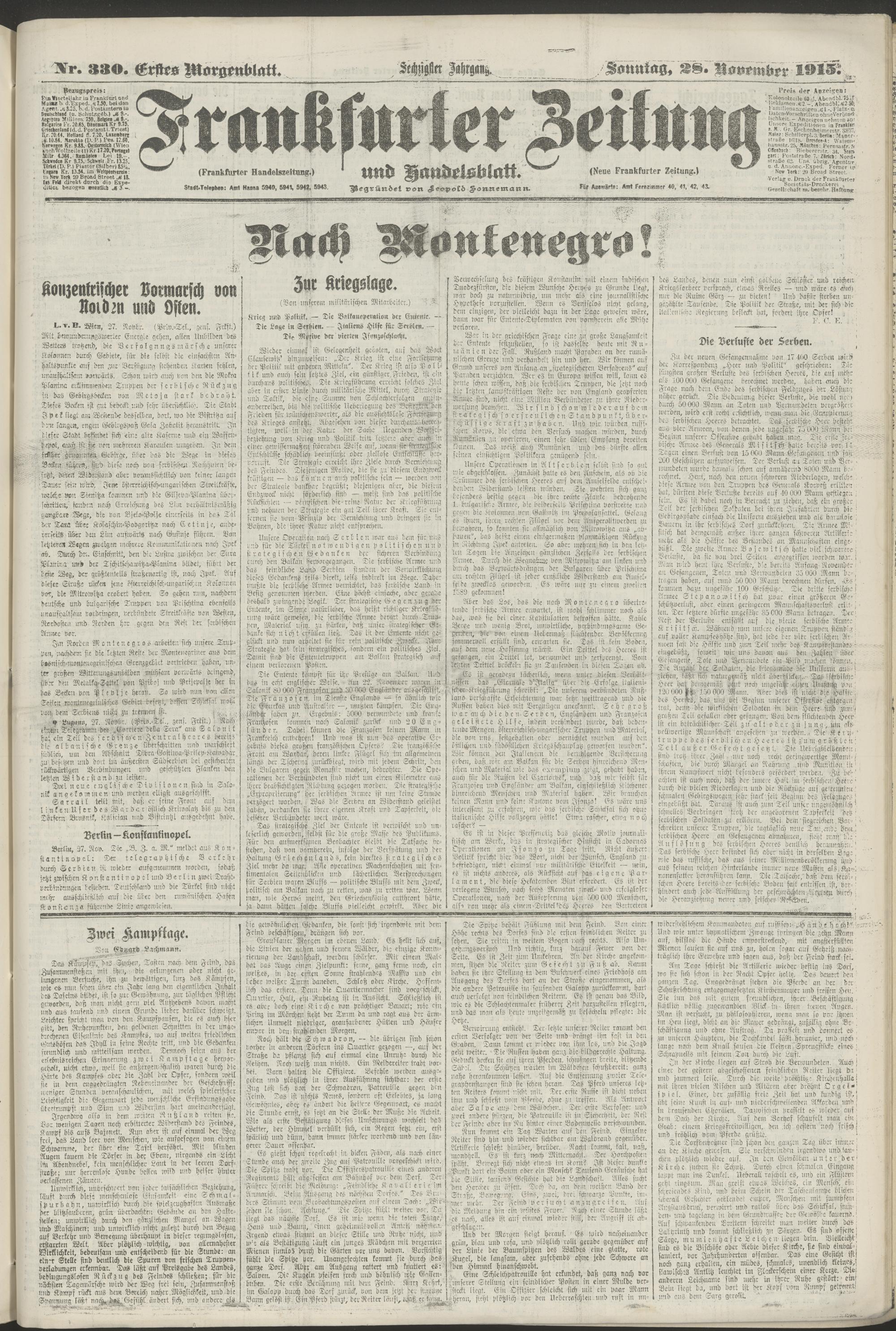 28.11.1915 = Nr. 330. Erstes Morgenblatt
