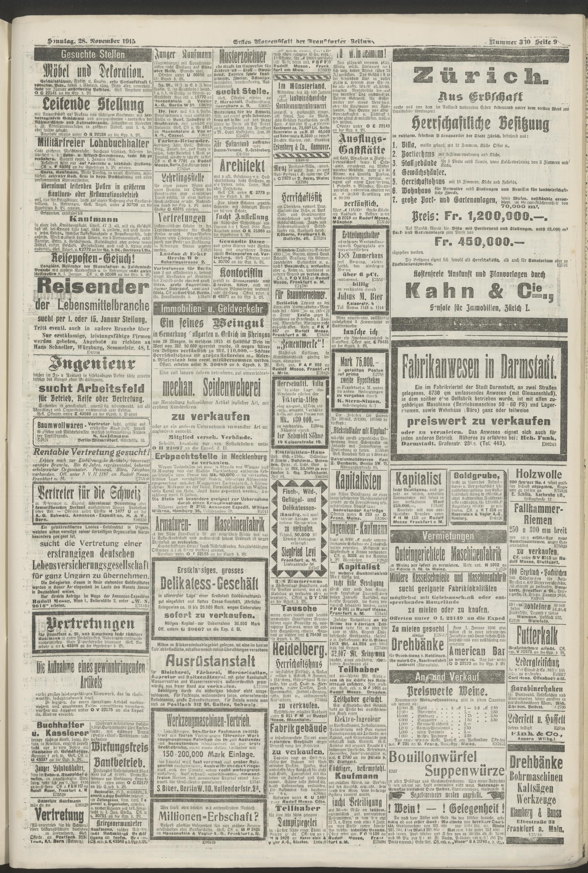 28.11.1915 = Nr. 330. Erstes Morgenblatt