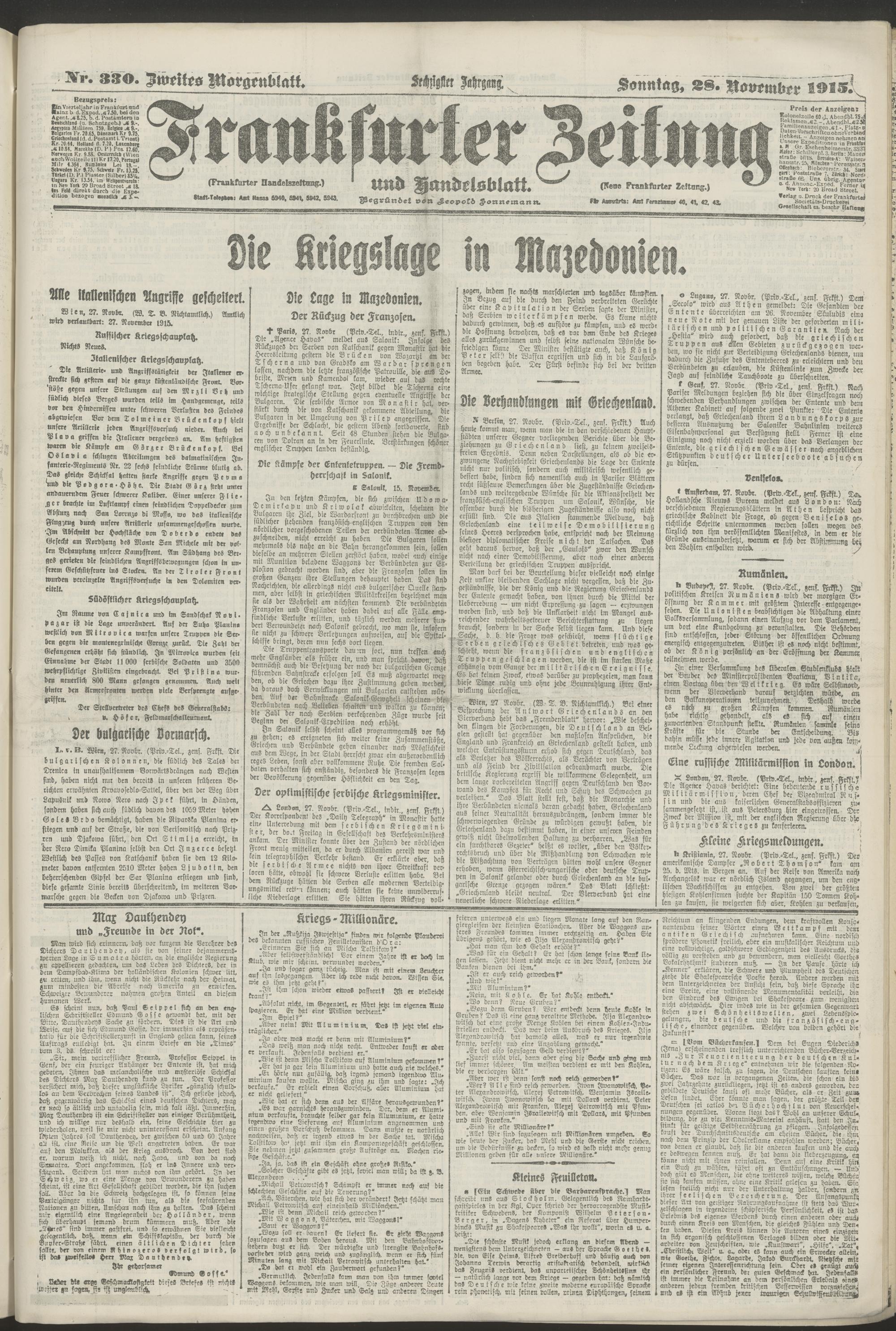 28.11.1915 = Nr. 330. Zweites Morgenblatt