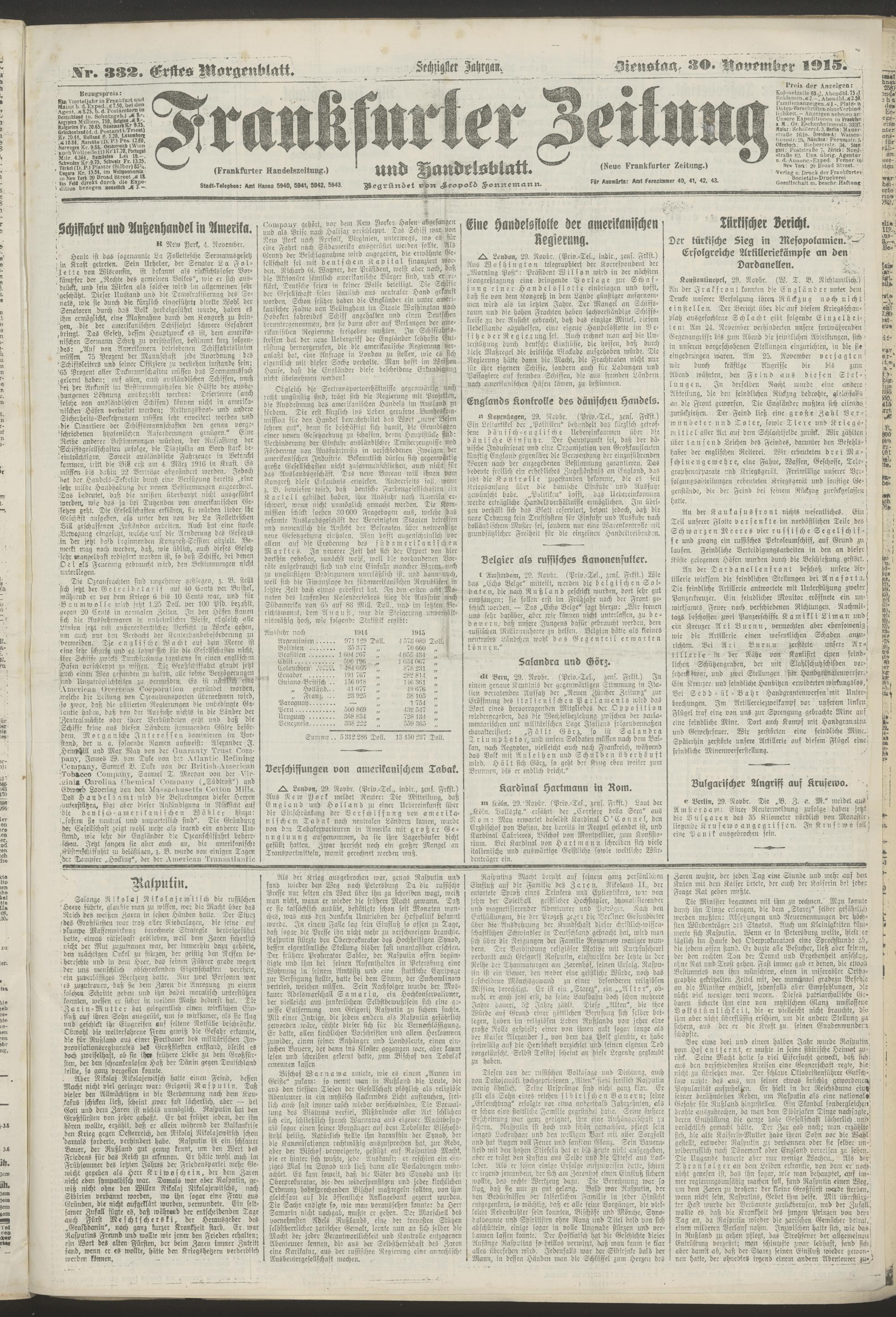 30.11.1915 = Nr. 332. Erstes Morgenblatt