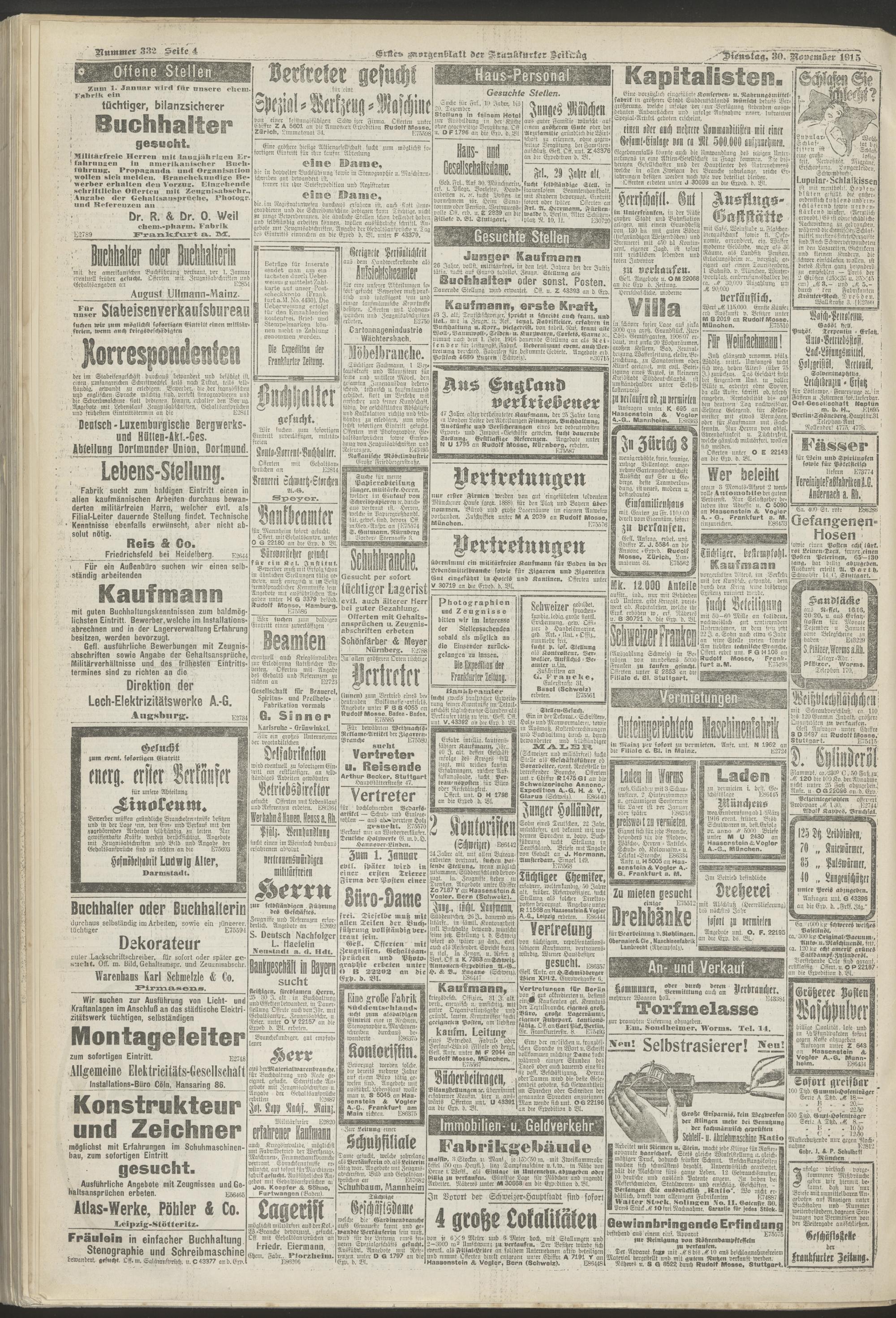 30.11.1915 = Nr. 332. Erstes Morgenblatt