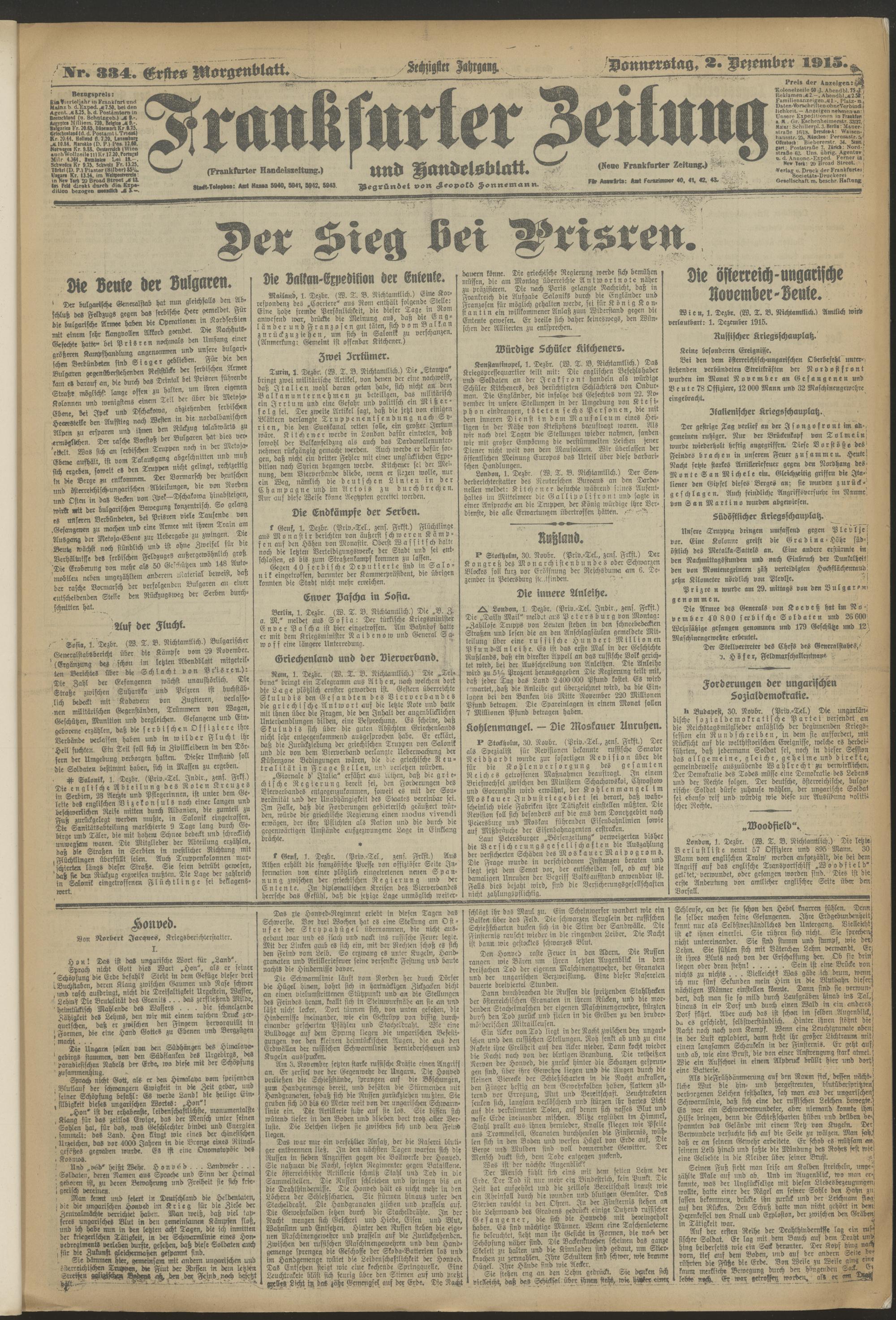 02.12.1915 = Nr. 334. Erstes Morgenblatt