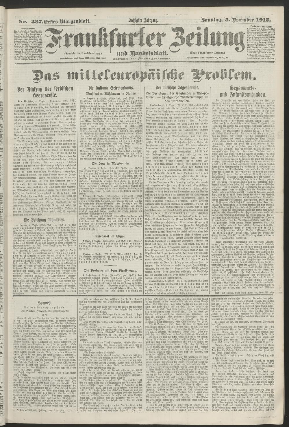 05.12.1915 = Nr. 337. Erstes Morgenblatt