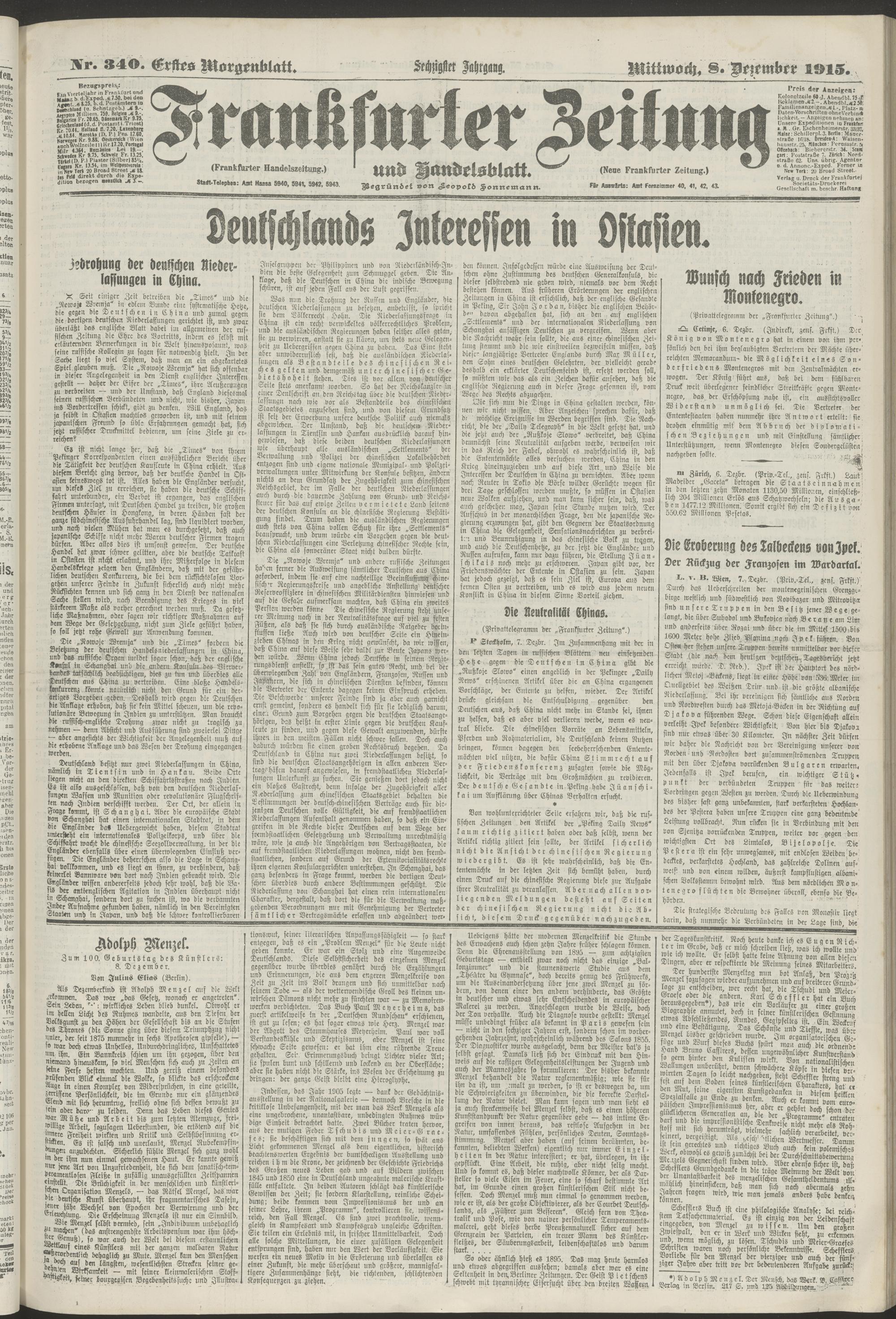 08.12.1915 = Nr. 340. Erstes Morgenblatt