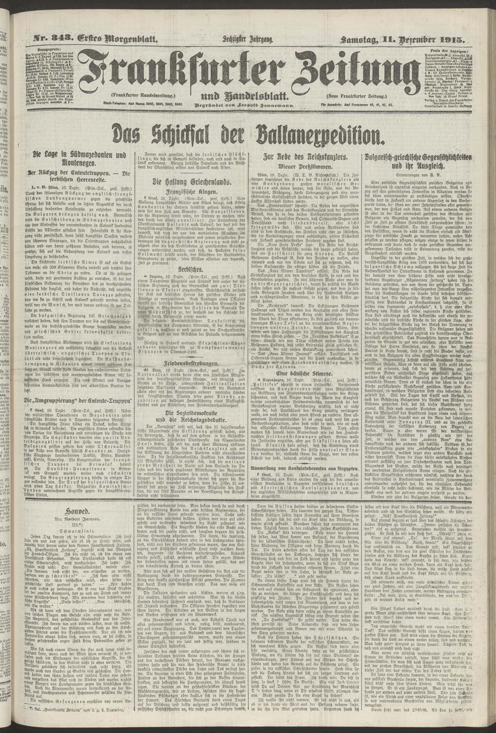 11.12.1915 = Nr. 343. Erstes Morgenblatt