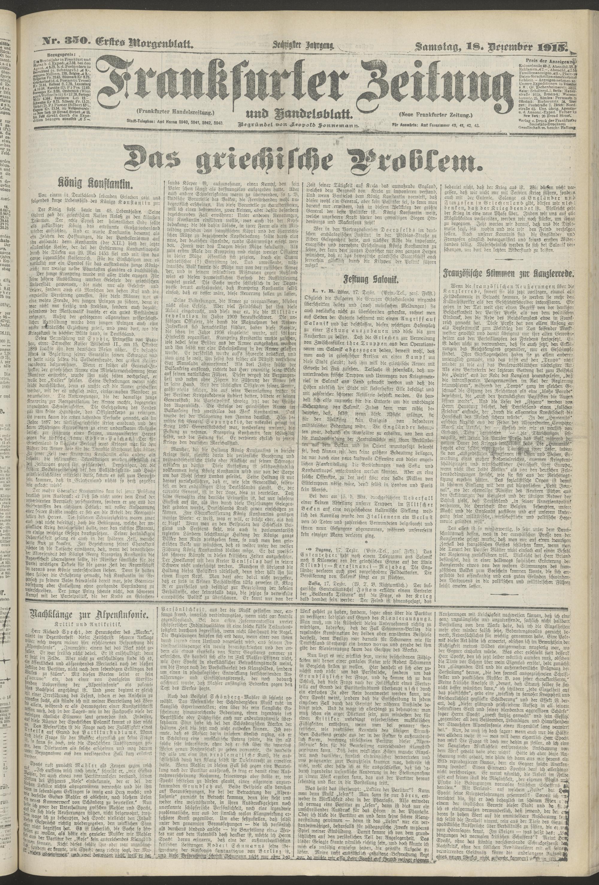 18.12.1915 = Nr. 350. Erstes Morgenblatt