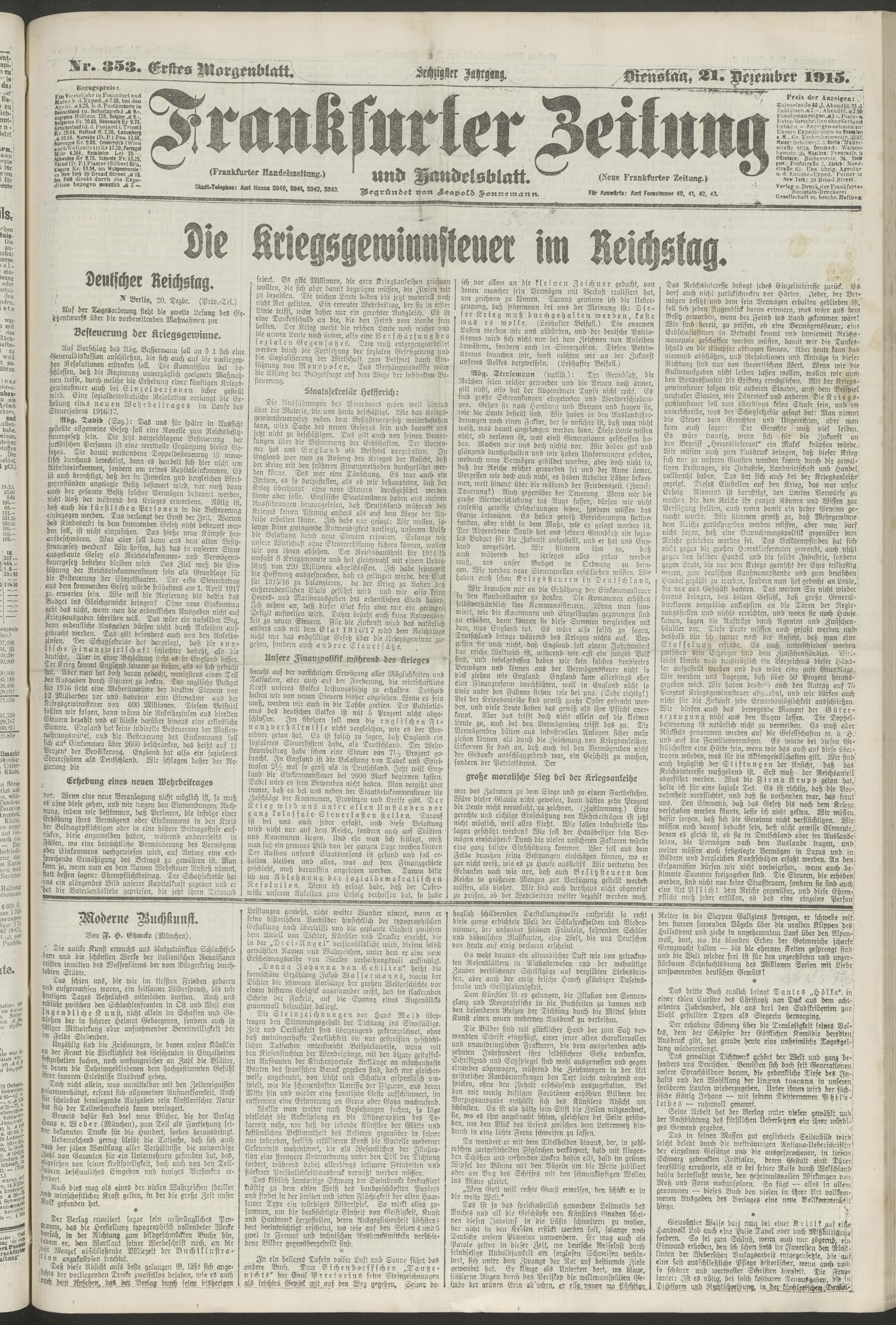 21.12.1915 = Nr. 353. Erstes Morgenblatt