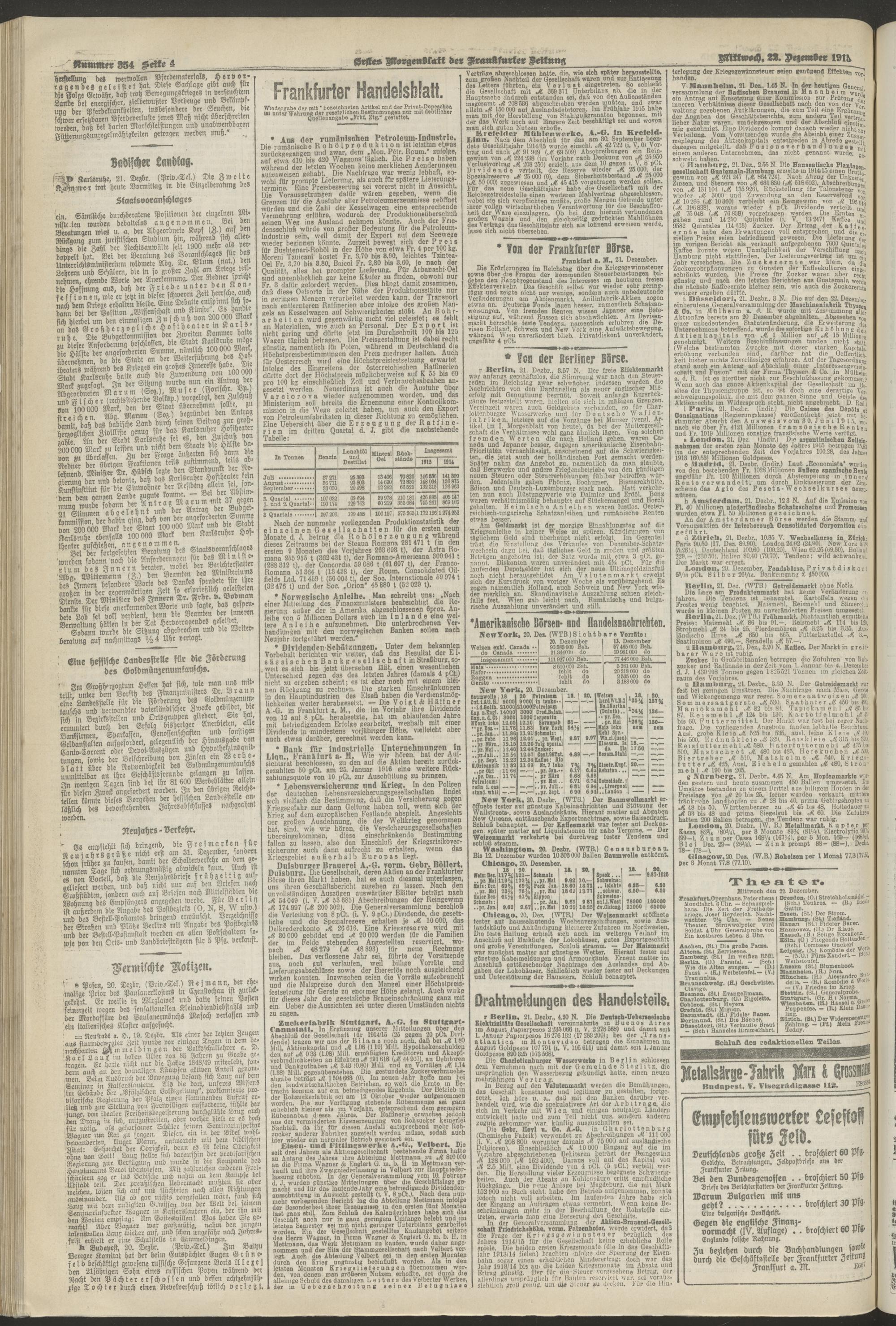 22.12.1915 = Nr. 354. Erstes Morgenblatt