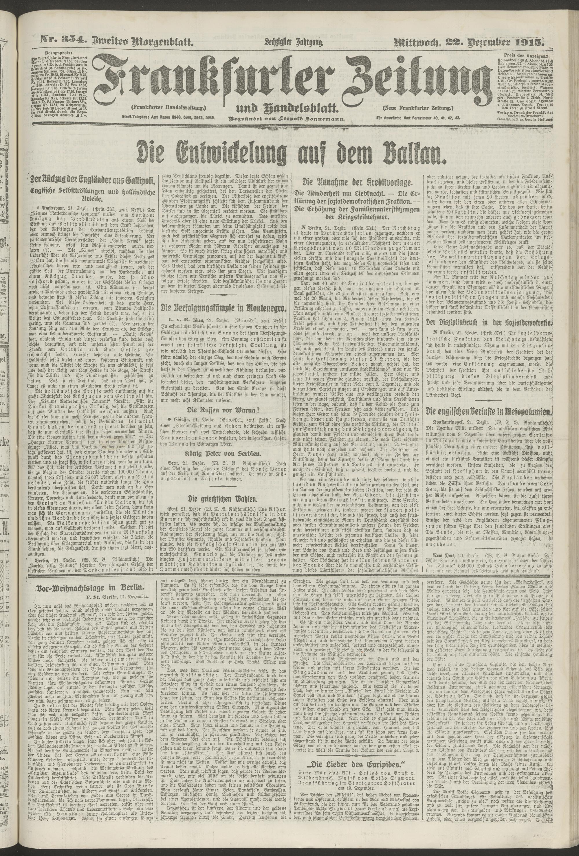 22.12.1915 = Nr. 354. Zweites Morgenblatt