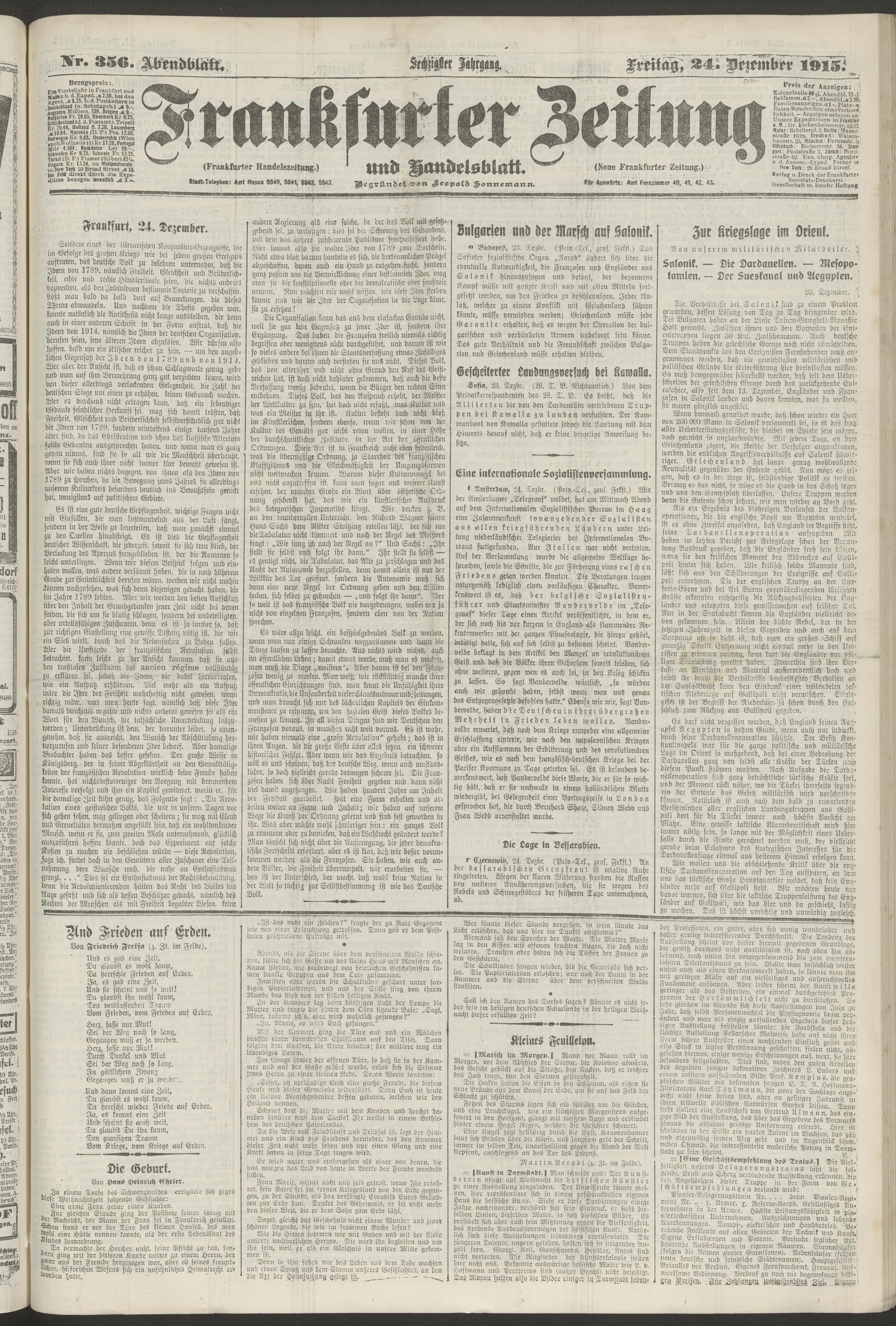 24.12.1915 = Nr. 356. Abendblatt