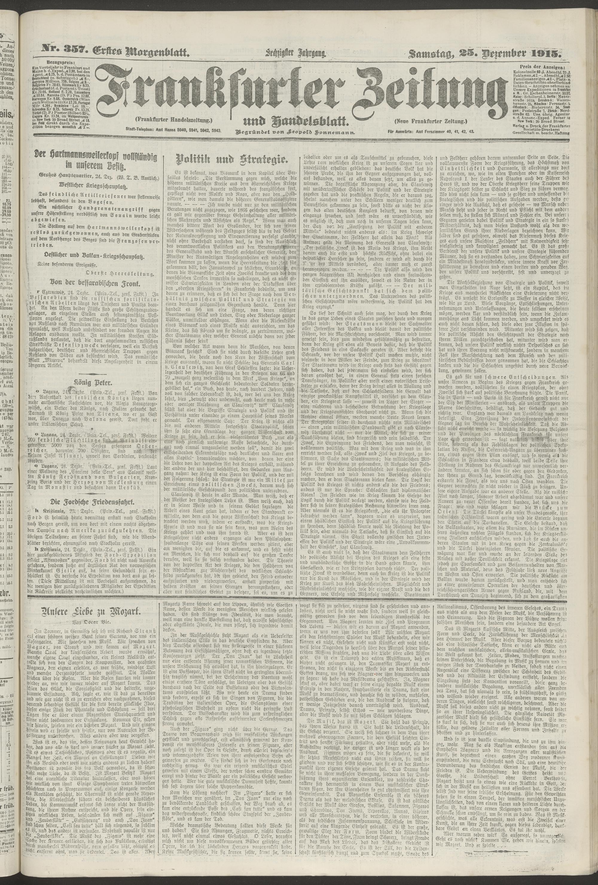 25.12.1915 = Nr. 357. Erstes Morgenblatt