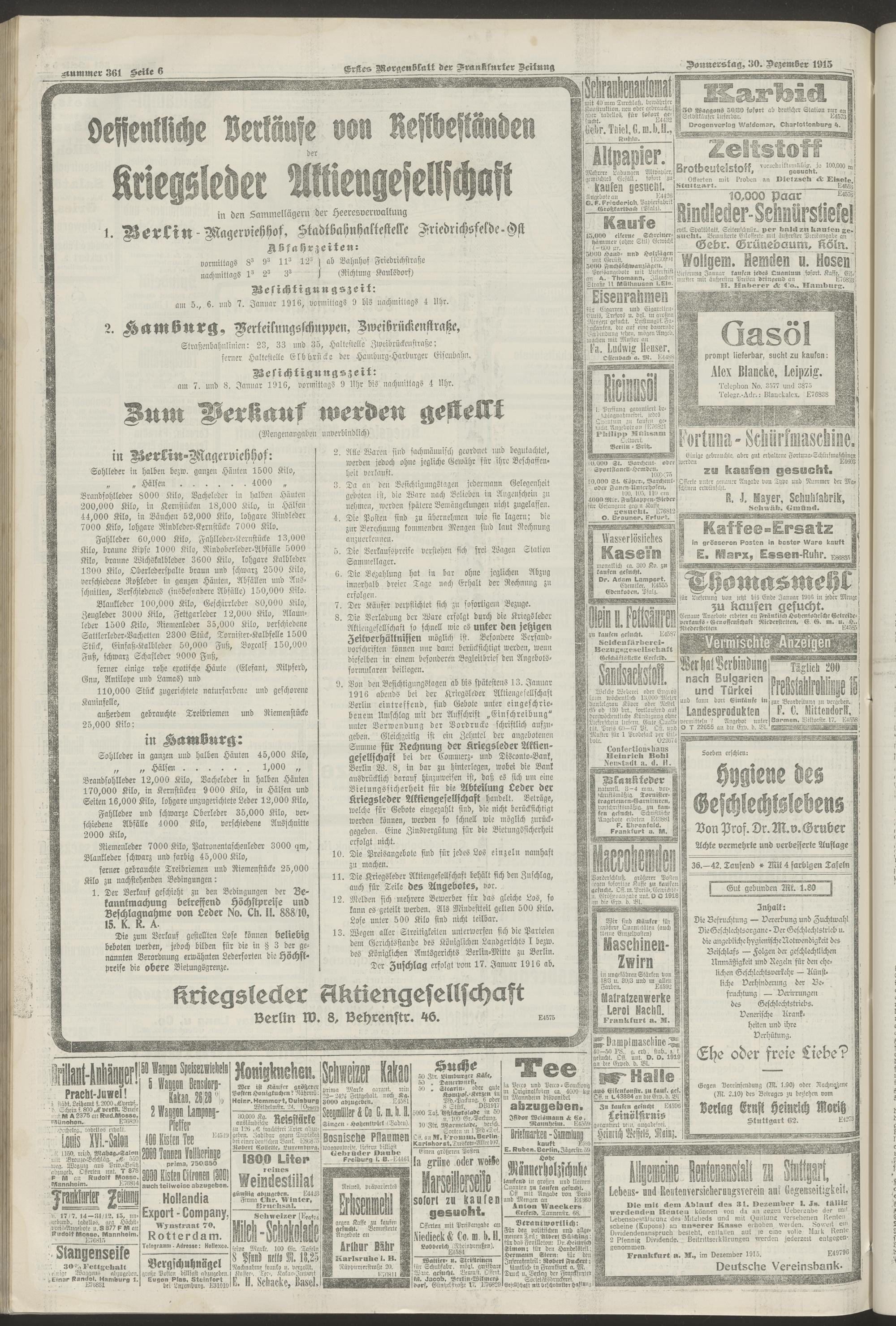 30.12.1915 = Nr. 361. Erstes Morgenblatt