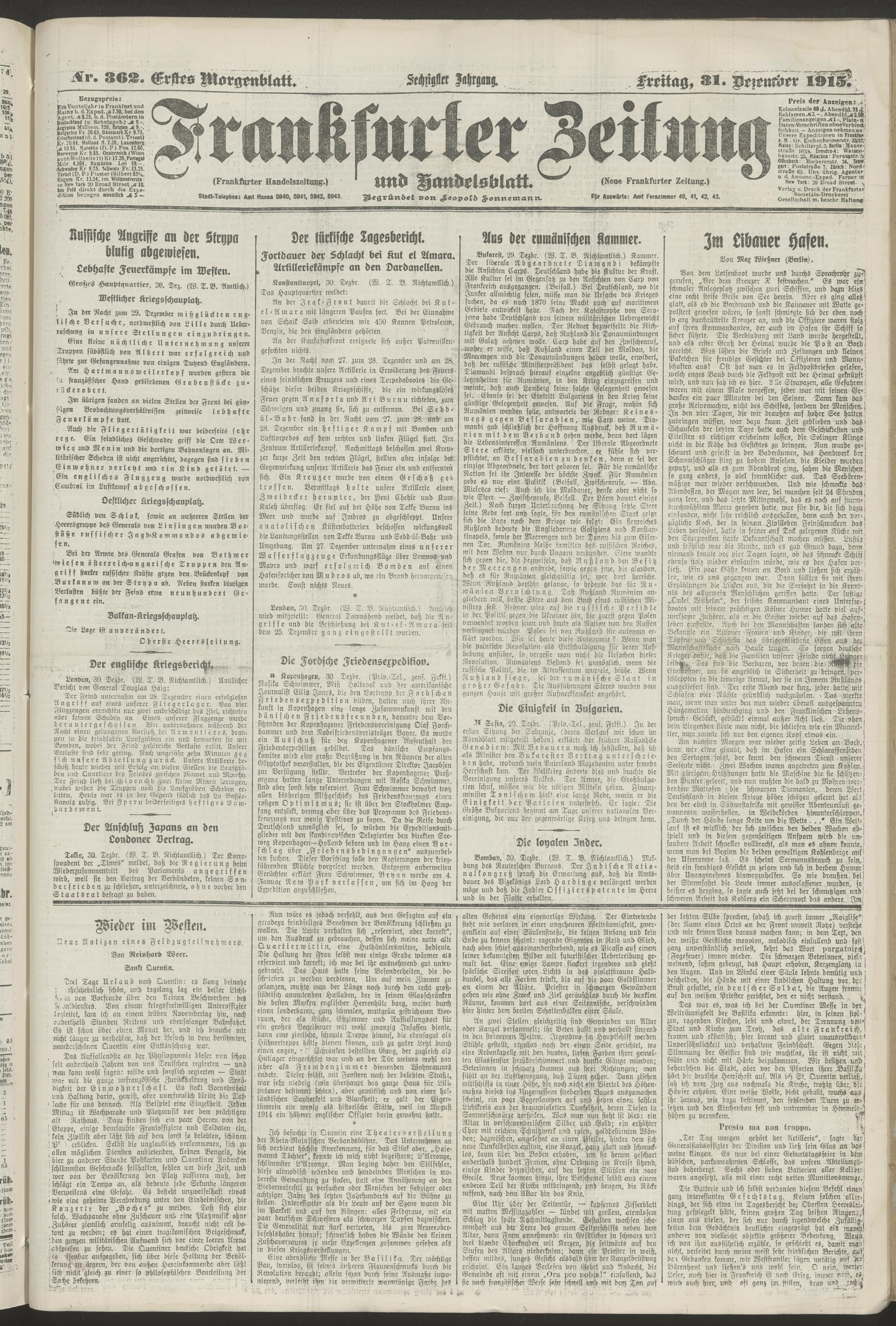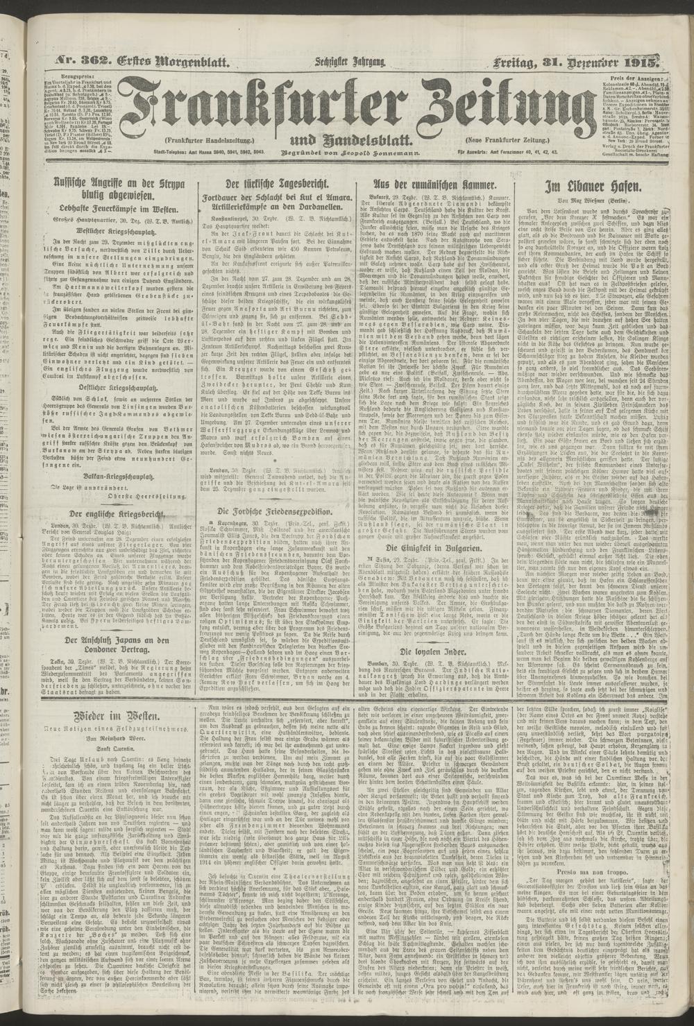 31.12.1915 = Nr. 362. Erstes Morgenblatt