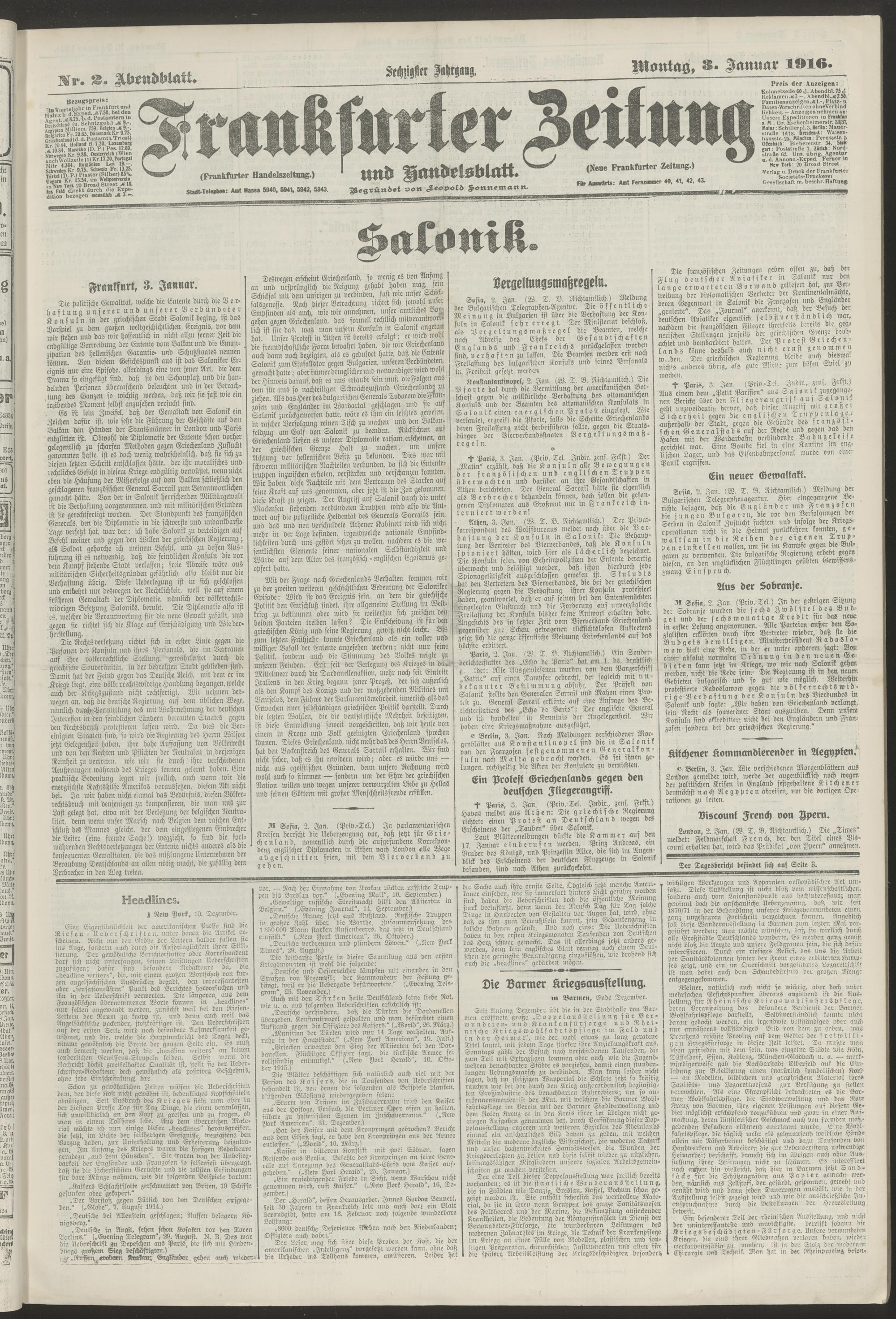 03.01.1916 = Nr. 2. Abendblatt