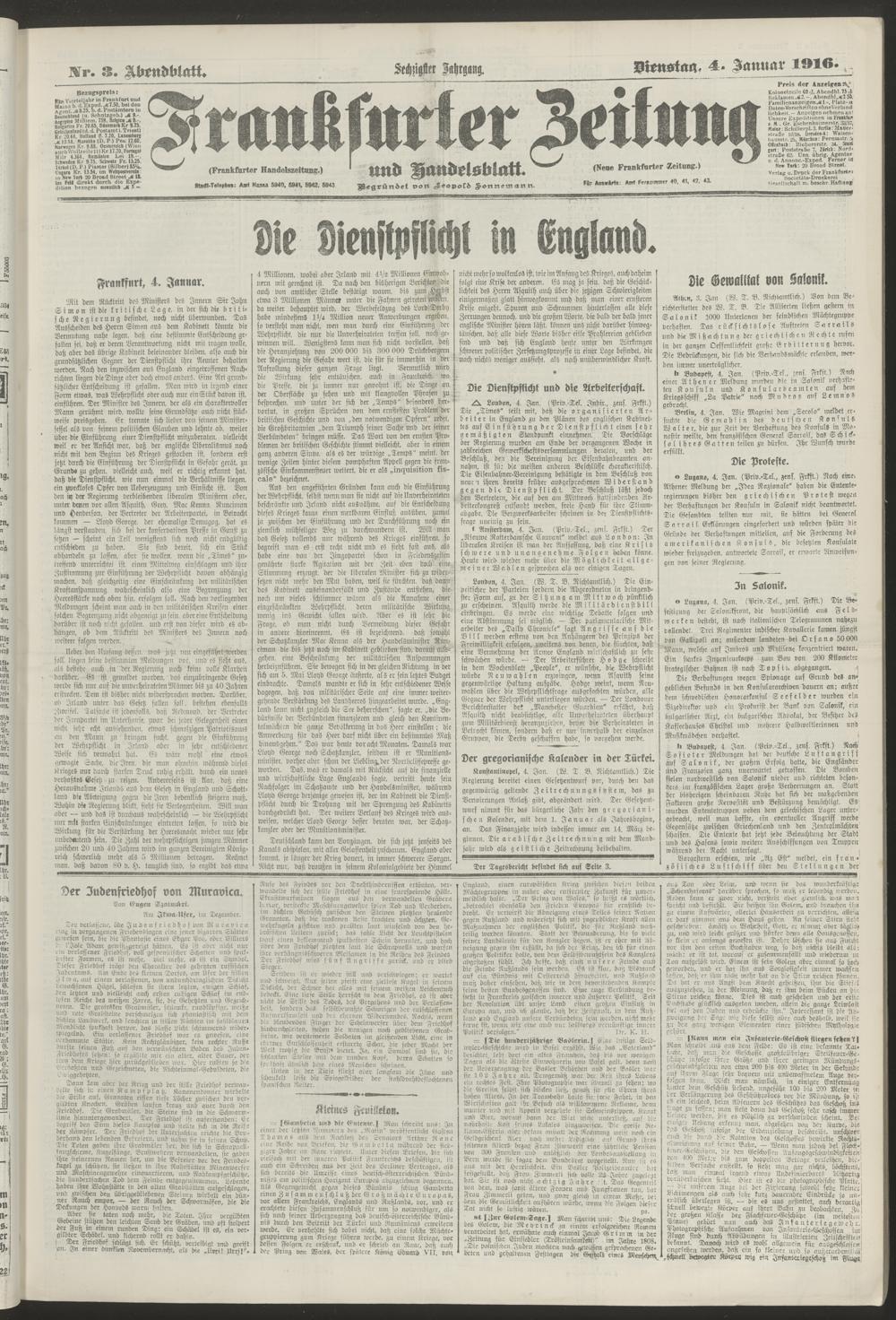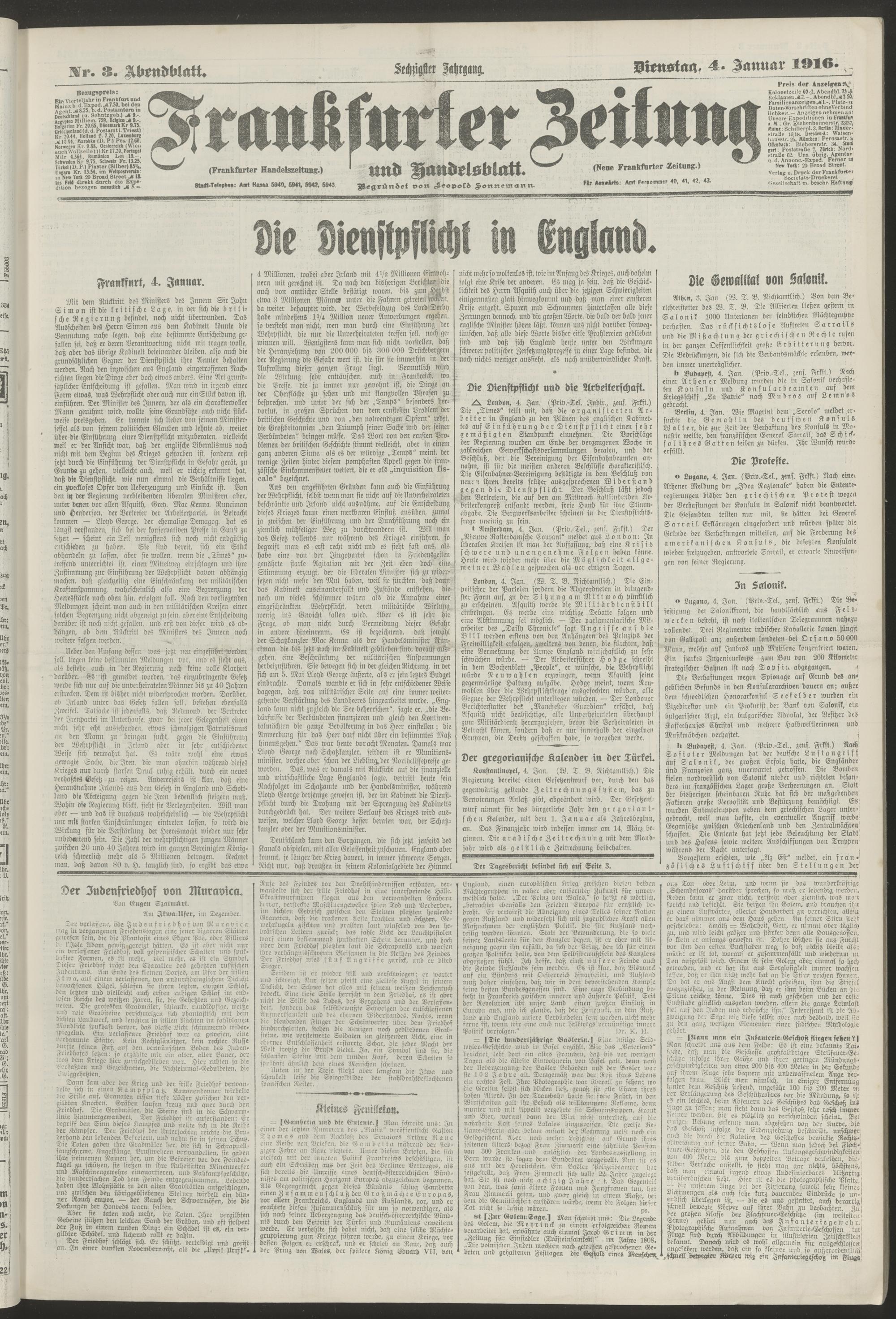 04.01.1916 = Nr. 3. Abendblatt
