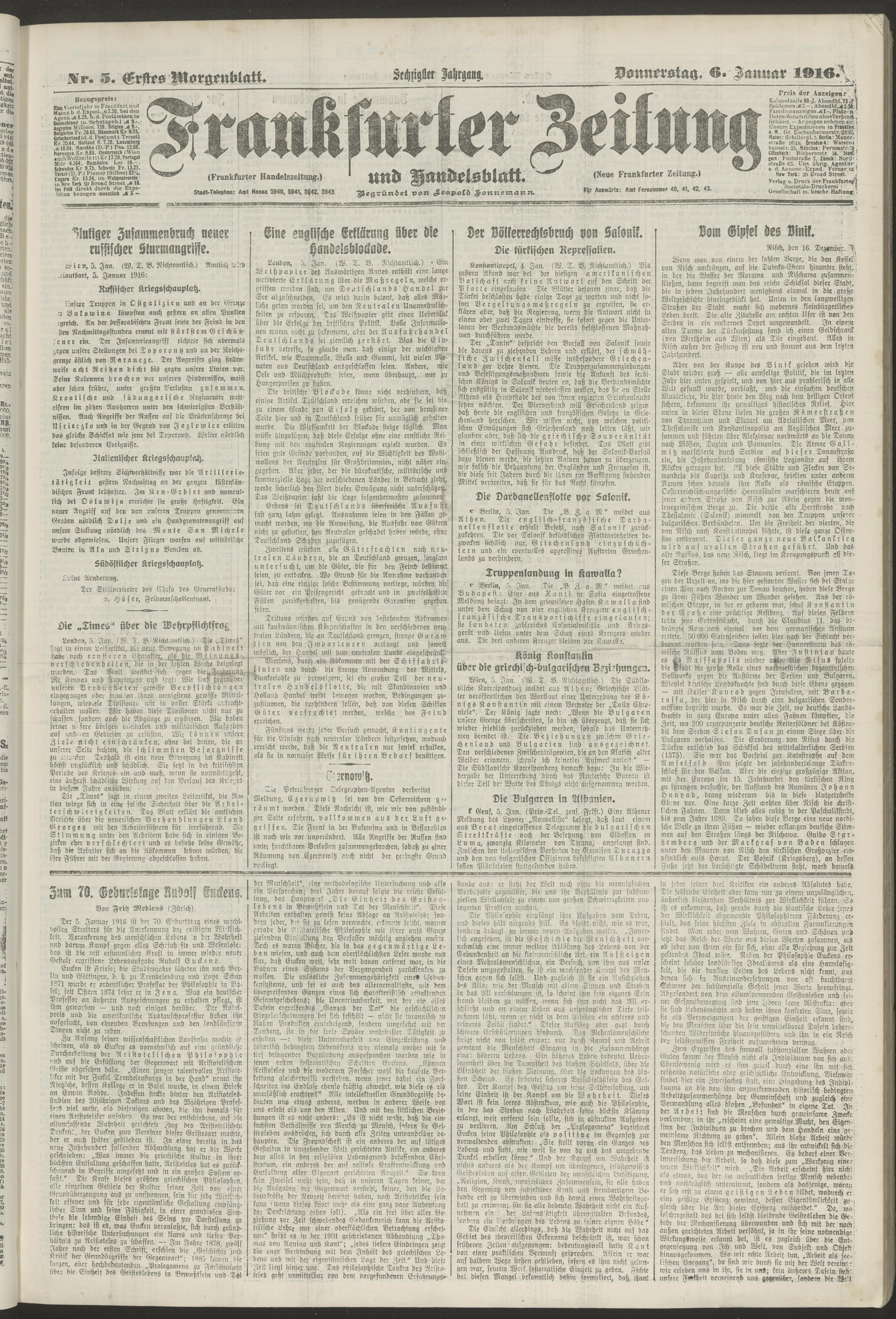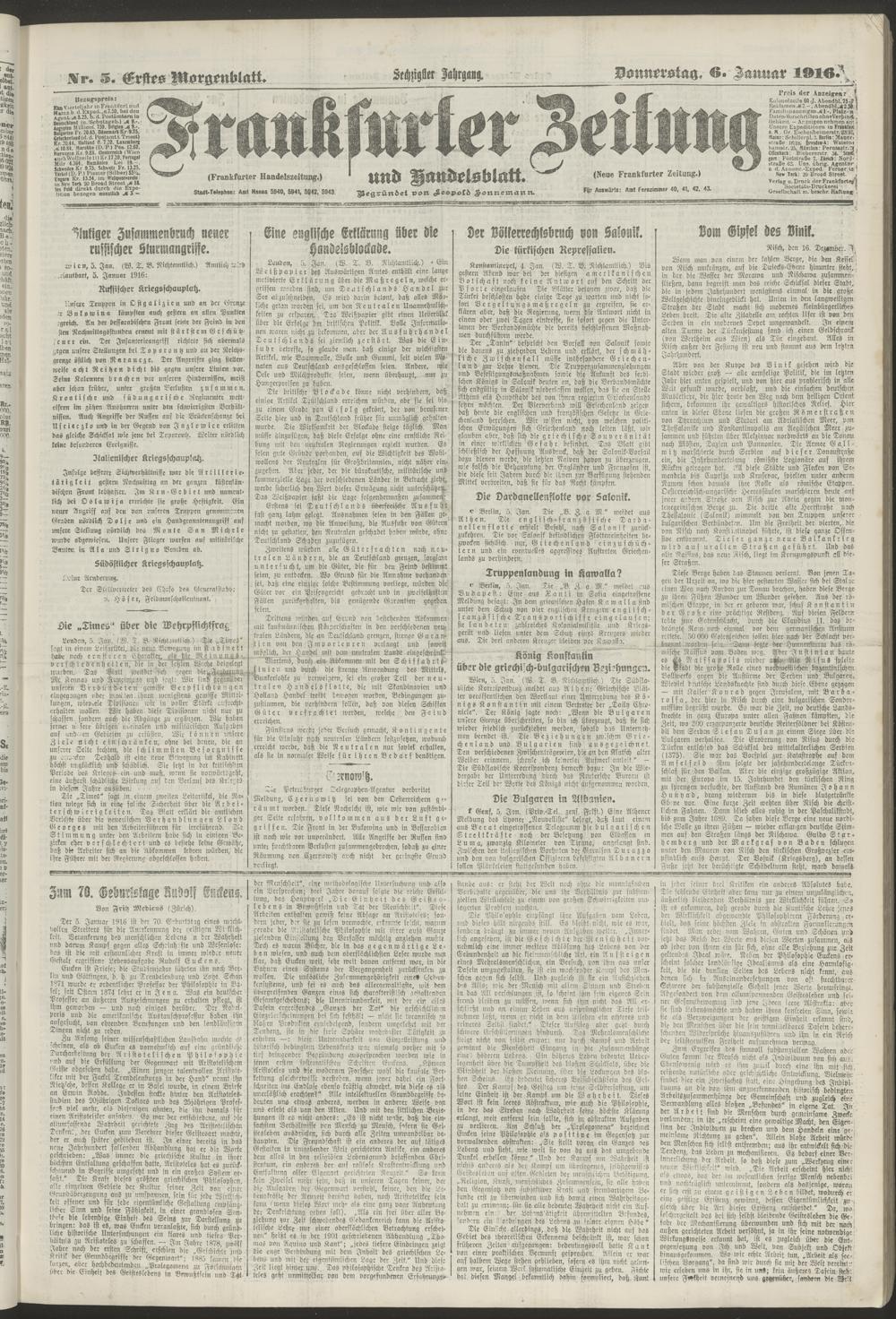 06.01.1916 = Nr. 5. Erstes Morgenblatt