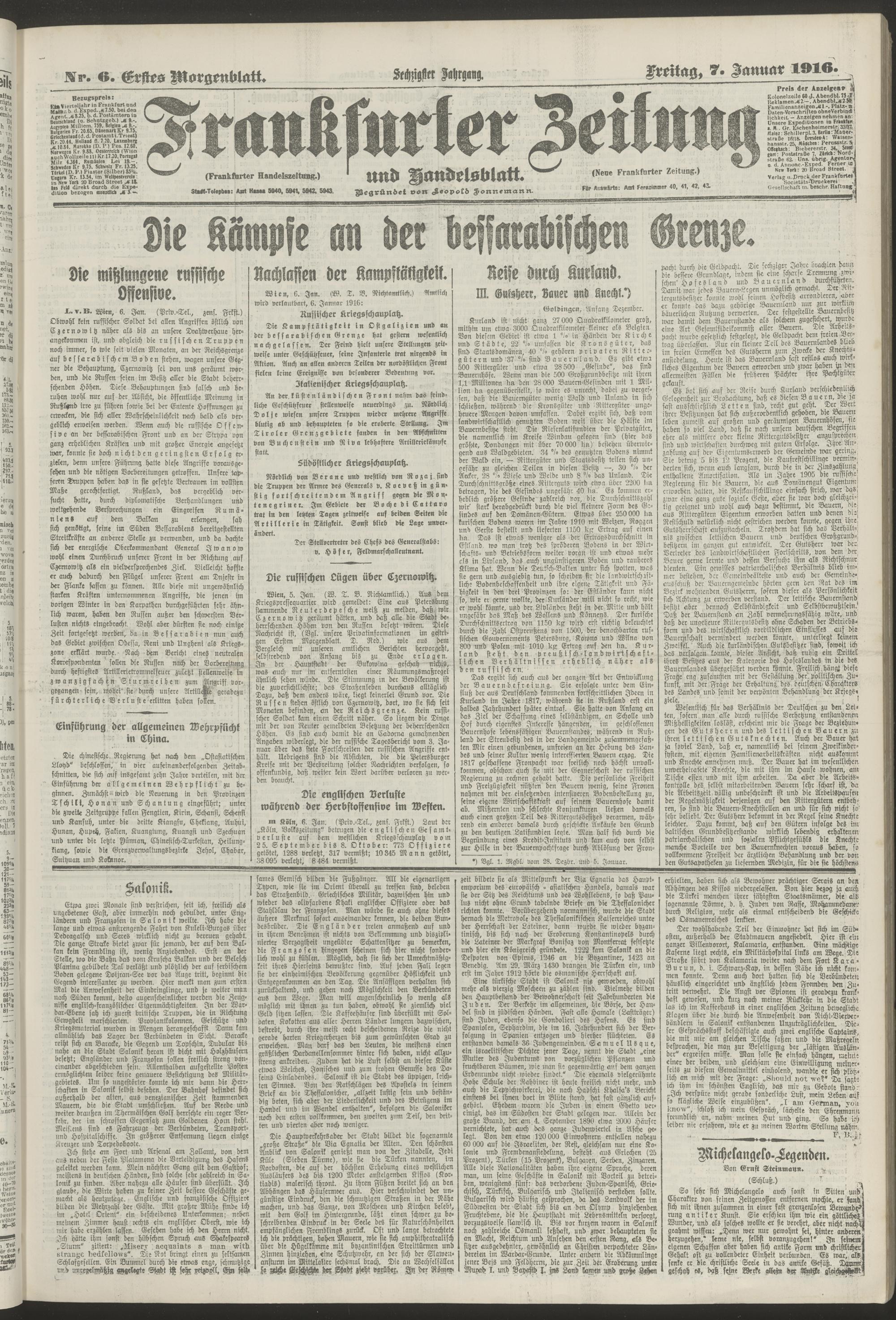07.01.1916 = Nr. 6. Erstes Morgenblatt