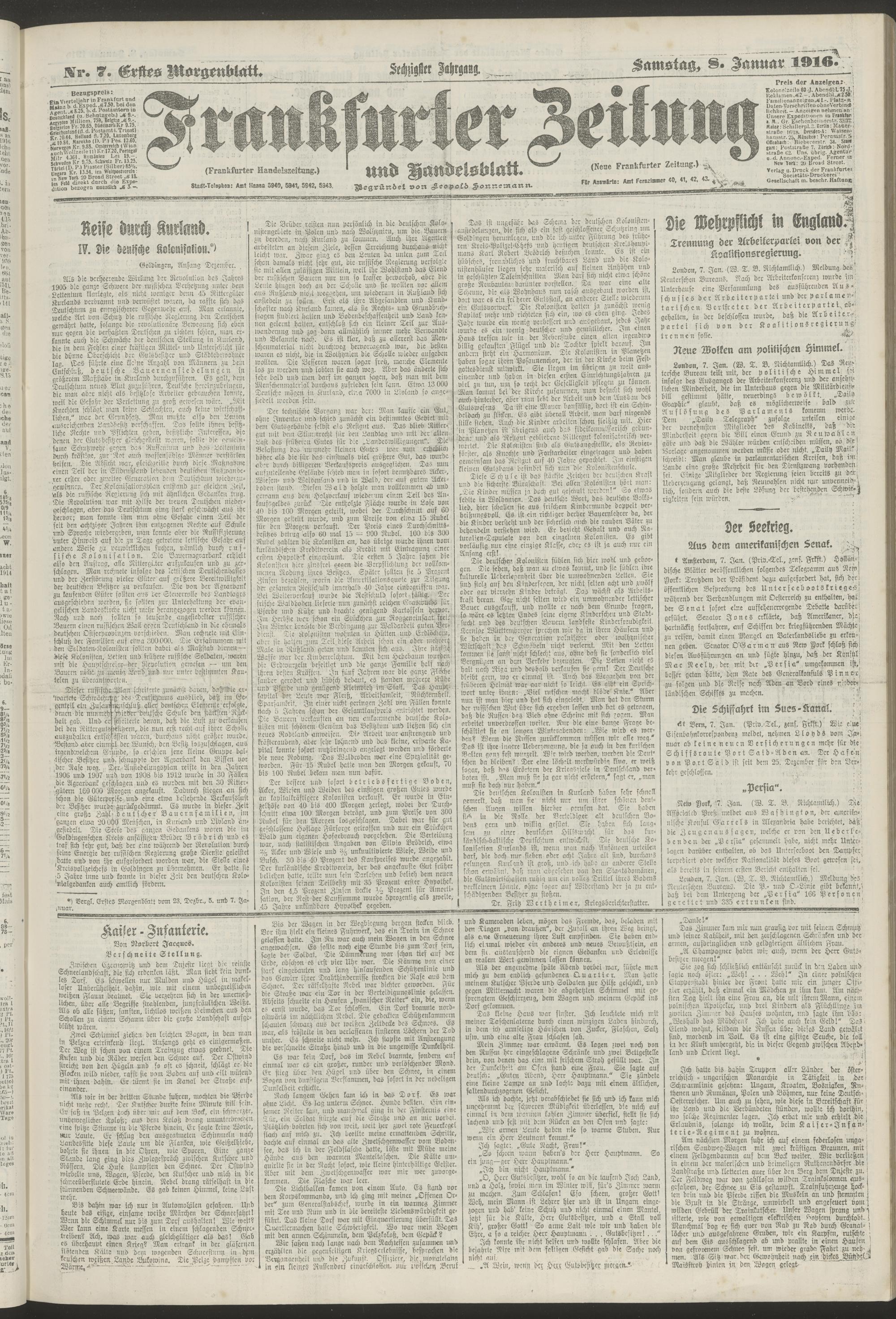 08.01.1916 = Nr. 7. Erstes Morgenblatt